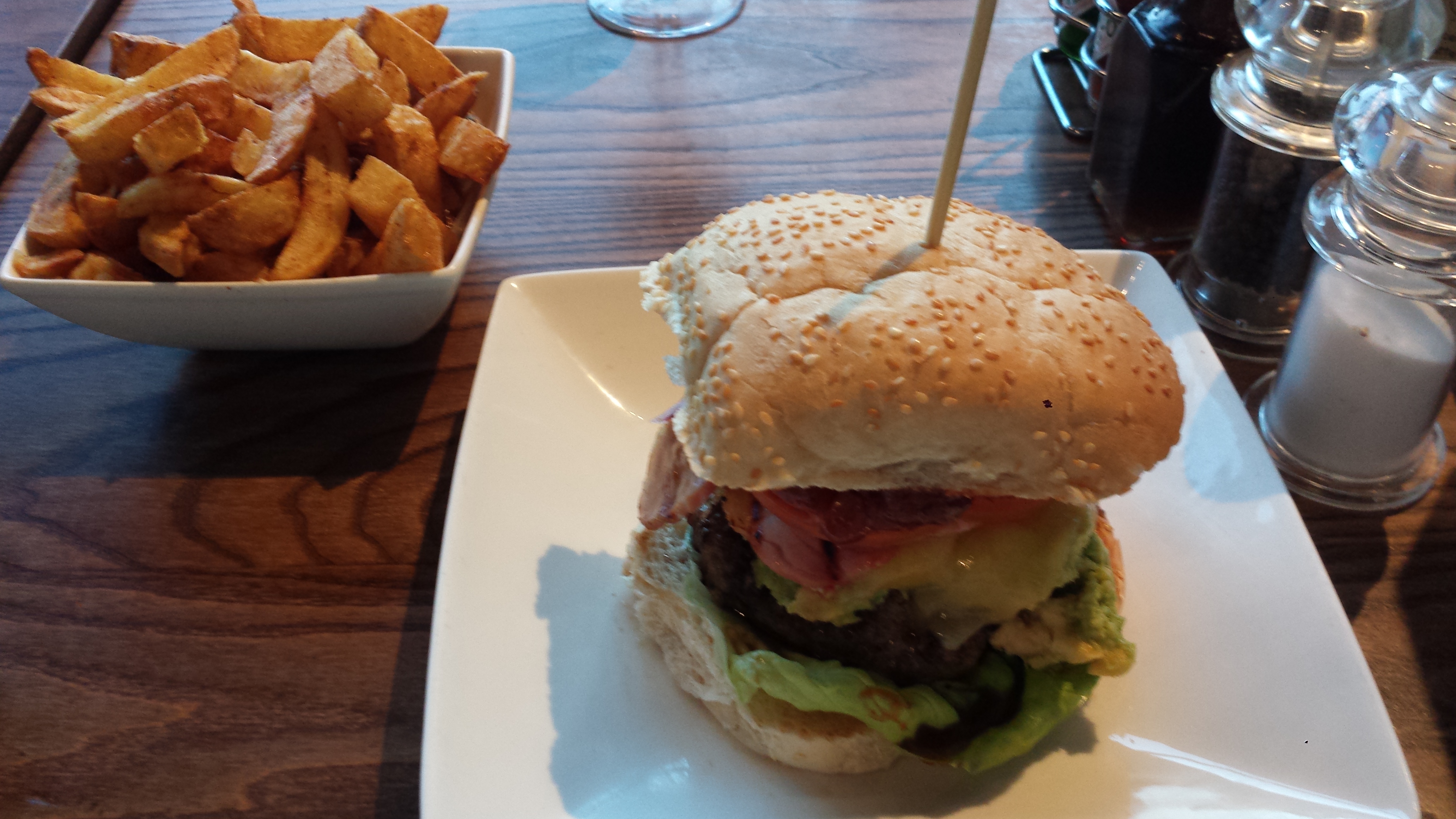 På bilden ser ni mitt val, jag som älskar både bacon och avokado och här pratar vi riktigt, tjockt engelskt bacon. Jag som mestadels äter LCHF beställde in allt som det presenterades i menyn eftersom det stod att bröden fanns antingen i ljus surdegsversion eller som brioche, båda bakade i eget bageri. Detta måste ju testas och nu hade jag syndat lite extra med glutengrejer under veckan redan, något man annars undviker, men magen protesterade inte ett dugg. Hamburgaren var otroligt god och var nästa positiva överraskning hos burgargänget: skotskt gräsbeteskött till 100%.