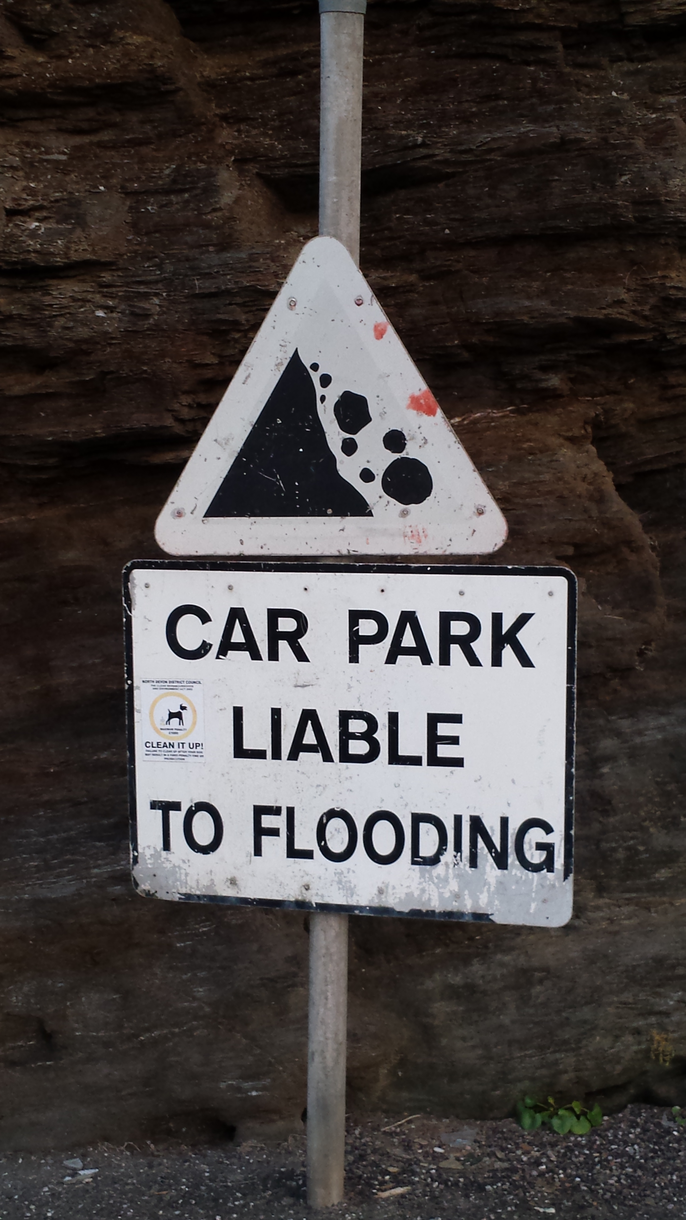 Idag blir det ett snabbt inlägg i julrushen så då passar jag på att dela en bild jag tog på en parkering i Ilfracombe. Vem tusan gör en officiell parkeringsplats av ett ställe där det både regnar stenar och svämmar över???