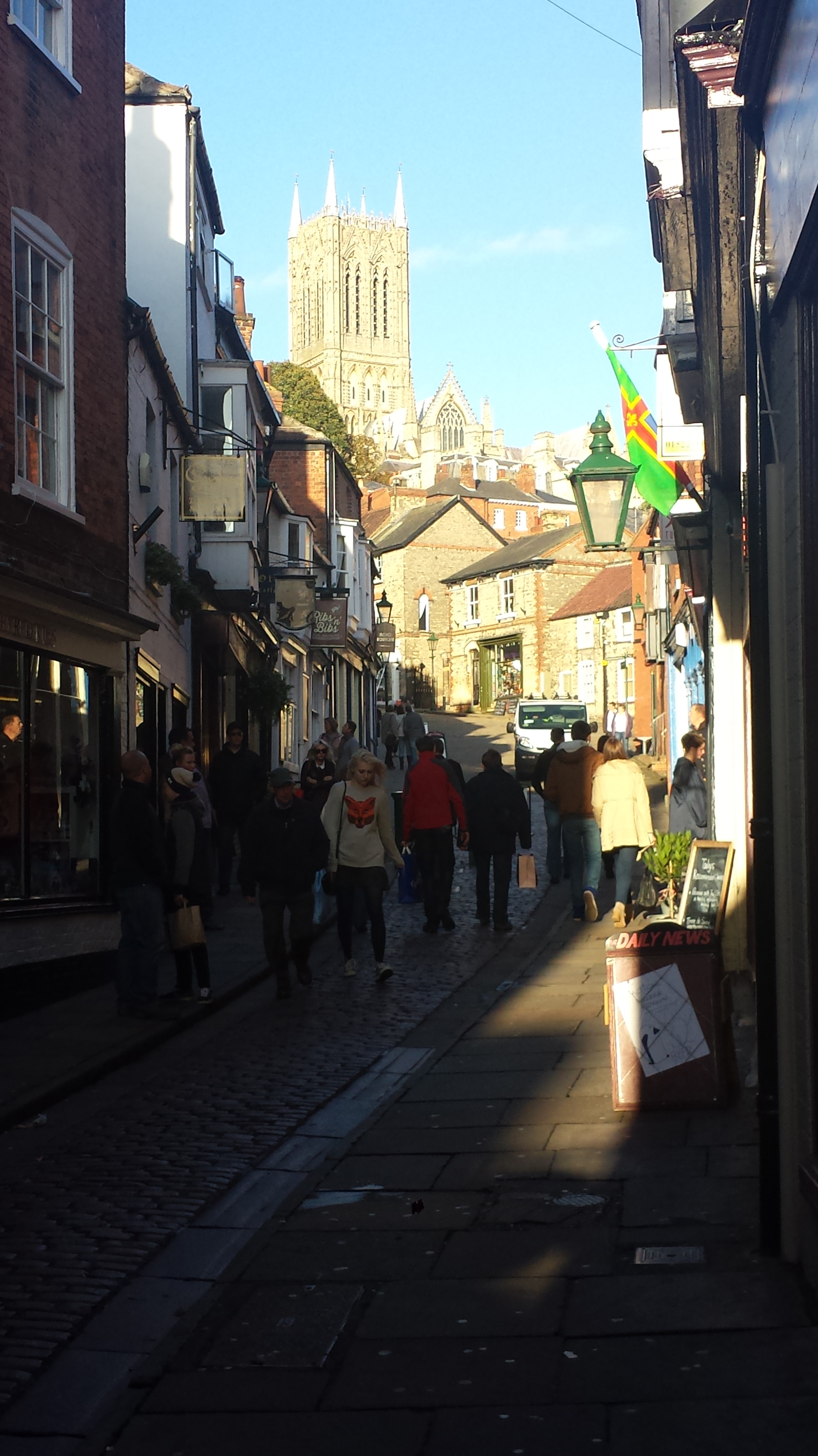 Strait, med vyn upp Steep Hill och Lincolns katedral.
