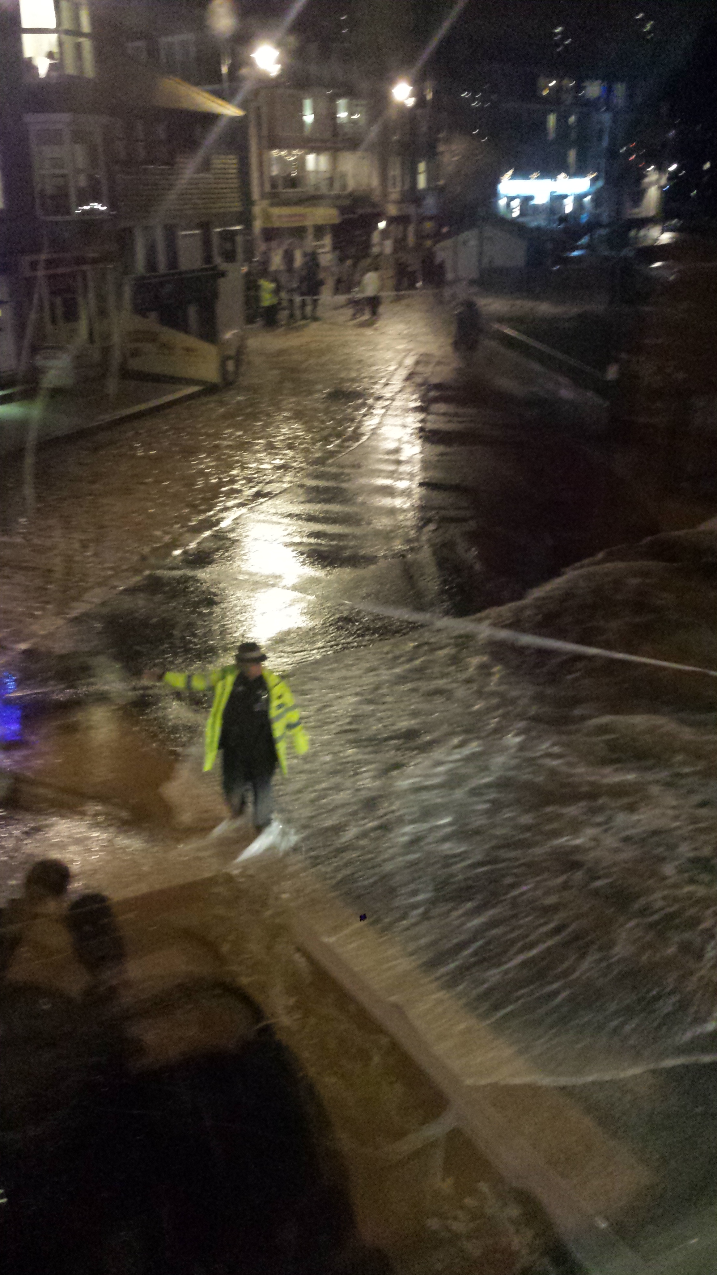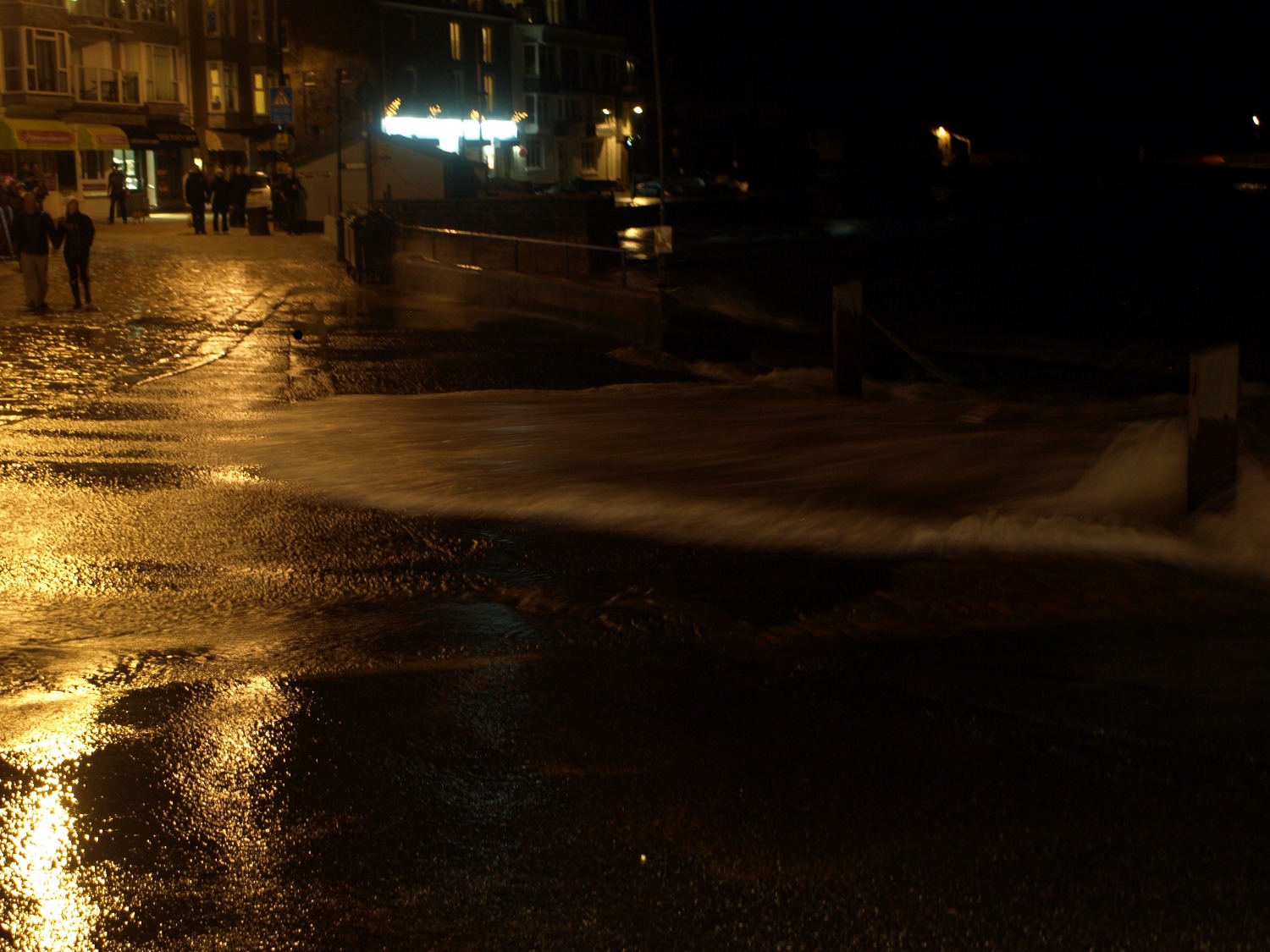 Nere i Cornwall var det lugnt tills dagarna efter nyår då stormen Hercules nådde oss och även om vi inte hade värre regn än vanligt utan massor av solsken så vaknade vi ett par morgnar av riktigt kraftigt hagel och åska och sedan kom tidvattnet – och vilket tidvatten. Redan på dagen innan riktigt högvatten hetsade barn varandra vid båtarnas iläggningsramper och det gick att se föräldrar som var mer och mindre oroade. Jag har sett extremt tidvatten i Yorkshire sommaren 2006 men det här var mycket mer. St Ives hamn ligger lågt med sandstrandsbotten och det händer att det svämmar över så pubar, restauranger och butiker har alla sandsäckar men nu var det mycket. Polisen fick stänga av gator nere i hamnen och blev själva offer för tidvattenvågorna i denna process där de blev översköljda medan de körde bort både folk och bilar. Det drar till sig mängder av våghalsar det här.