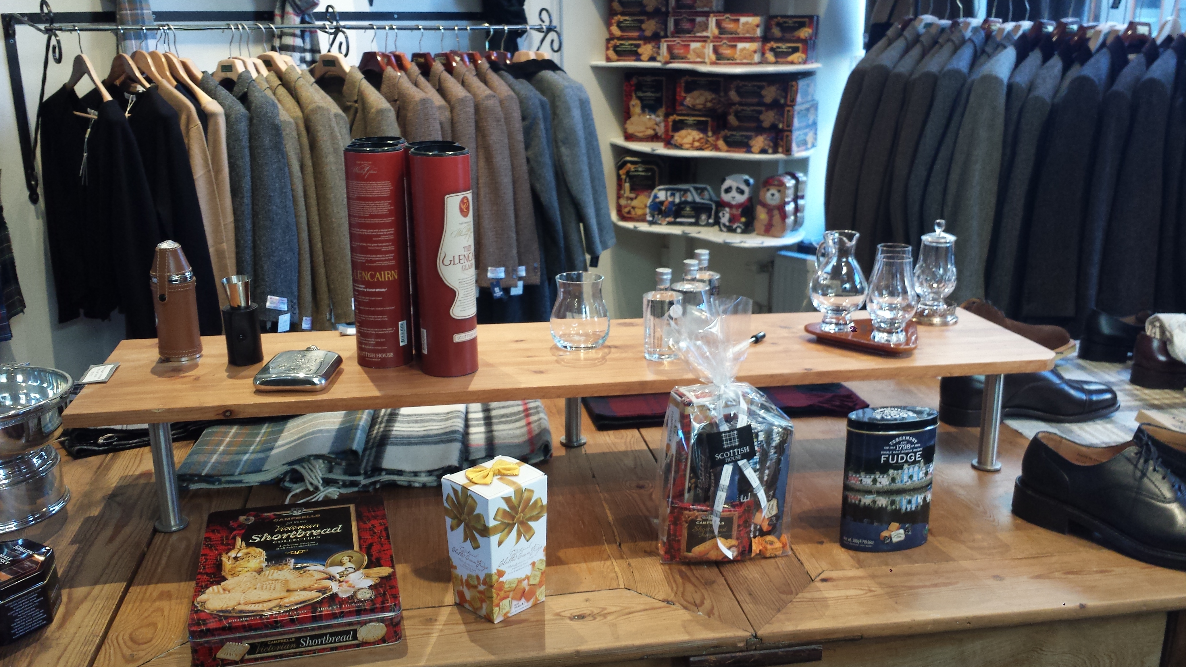 Är du bara ute efter en present till en vän eller något skotskt att ha hemma så kan du köpa whiskyfudge av allehanda sorter, shortbread och inte minst fina klassiska whiskyglas. Skotskt vatten till whiskyn? Inga problem det heller! Du hittar också den perfekta fotkrämen till när du gått i gummistövlar ute i naturen en hel dag. Själv nöjde jag mig med humoristiska vykort om Duncan och Jessie den här gången och det finns många fler personligheter i den samlingen.