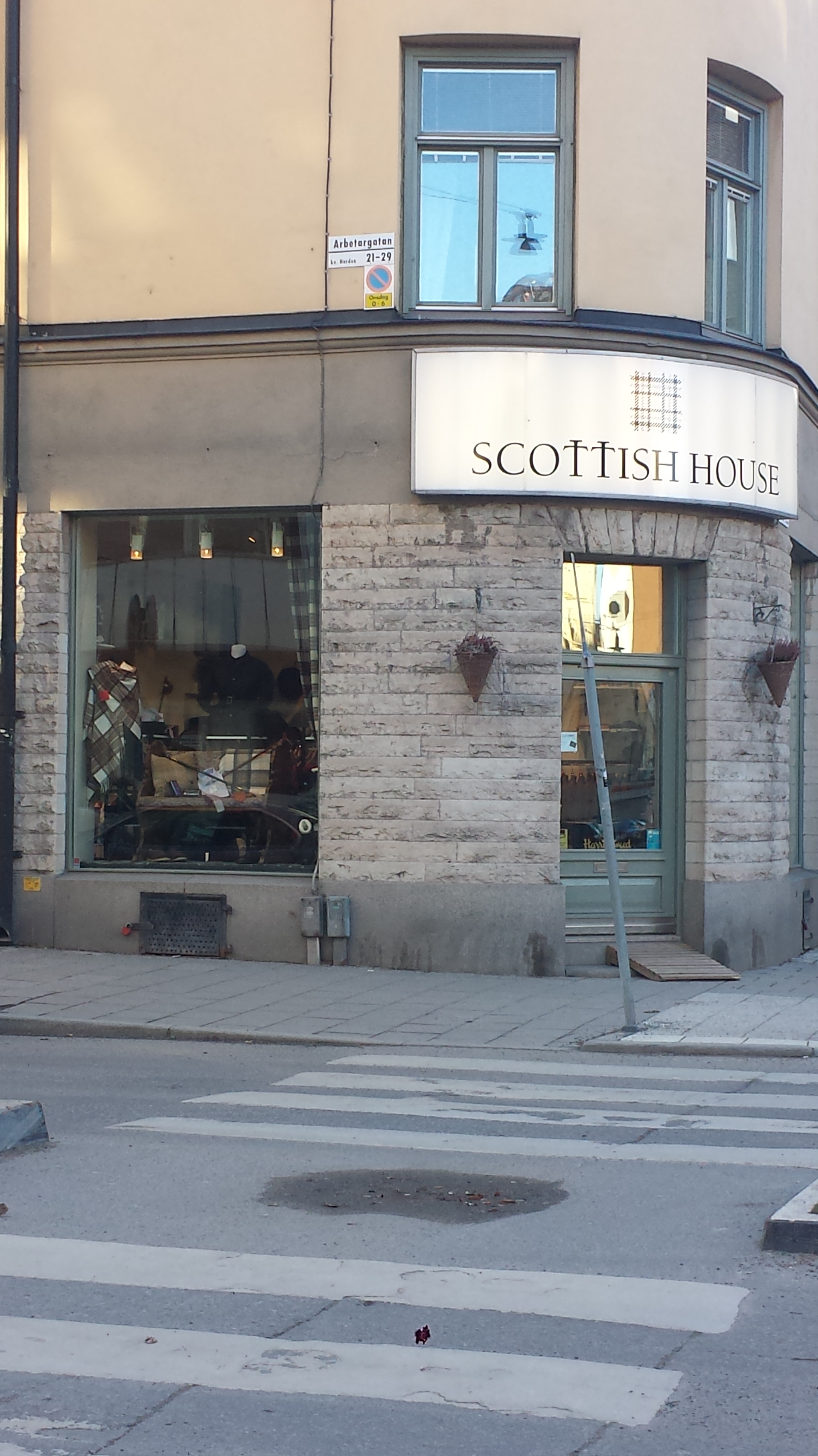 Nu i helgen har jag hunnit med ett besök på Scottish House på Fleminggatan 105 på Kungsholmen. Har du inte tid att åka till Skottland men vill prova en Harris tweedkavaj eller en kilt så är det hit du ska tycker jag. Det finns säkert Harris på fler ställen i trakten och Scottish House är ingen stor butik men det känns extra skotskt att köpa den här hos Patrick och hans svenska fru Siv som tyvärr inte jobbade själva just denna lördag men Pat var väldigt snabb på att svara på mail tidigare i veckan.