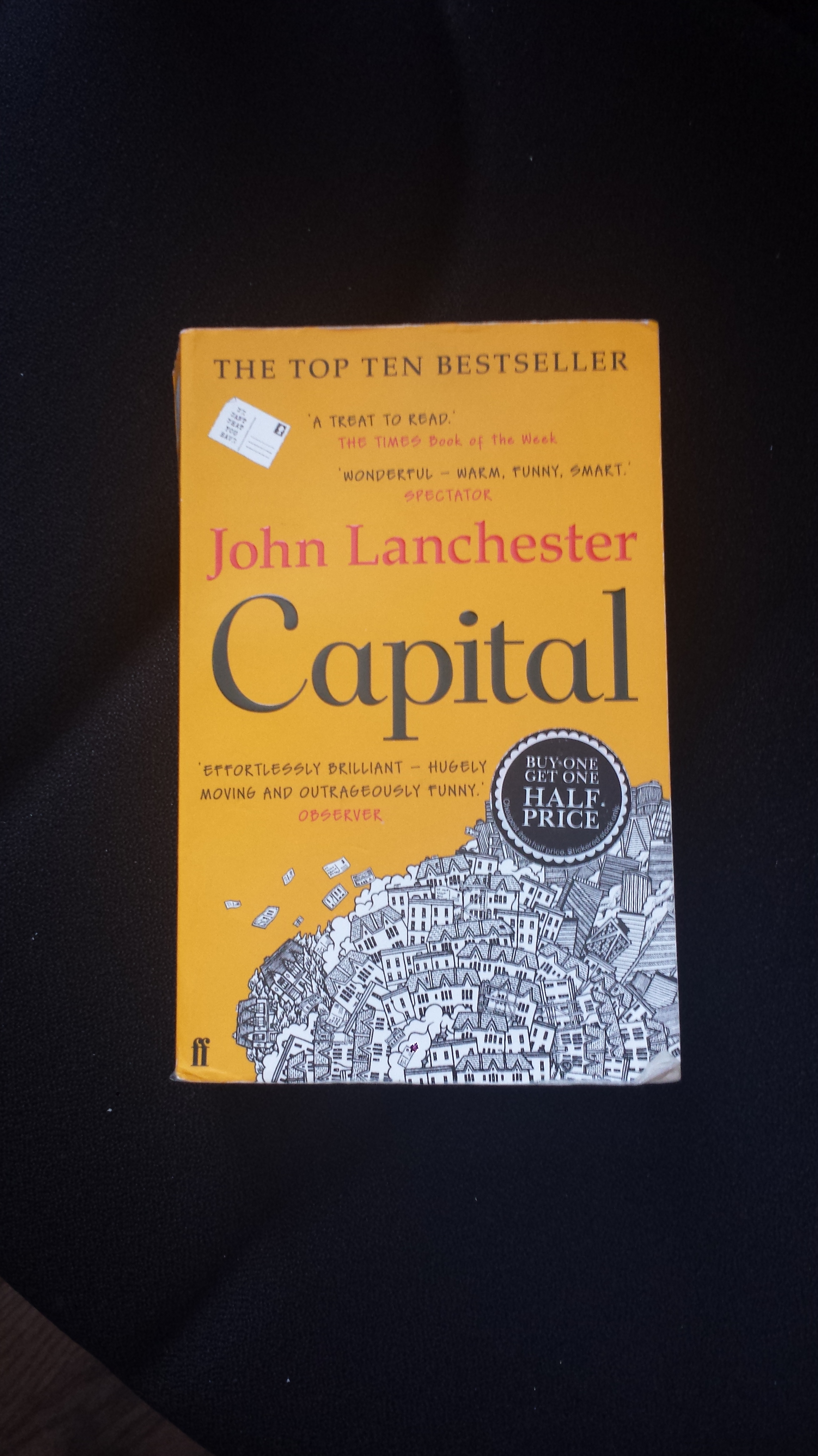Häromsistens klev jag in på Waterstones Kensington High Street som är en av mina favoriter i London helt enkelt för att det fortfarande känns som om de har mycket engelskt på borden och inte bara svenska deckare. Alla Waterstones lockar tydligt med nytt de tycker man ska läsa och på en av hyllorna stod tjock och gul boken Capital av John Lanchester som fick följa med hem eftersom den utlovade något annorlunda. Det annorlunda var att den handlar om en gata i södra London vars invånare samtliga får ett kort i brevlådan på vilket det står ”Vi vill ha vad ni har”. Detta följs av fler liknande meddelanden och andra händelser mot de boende på gatan och det här är bokens röda tråd.