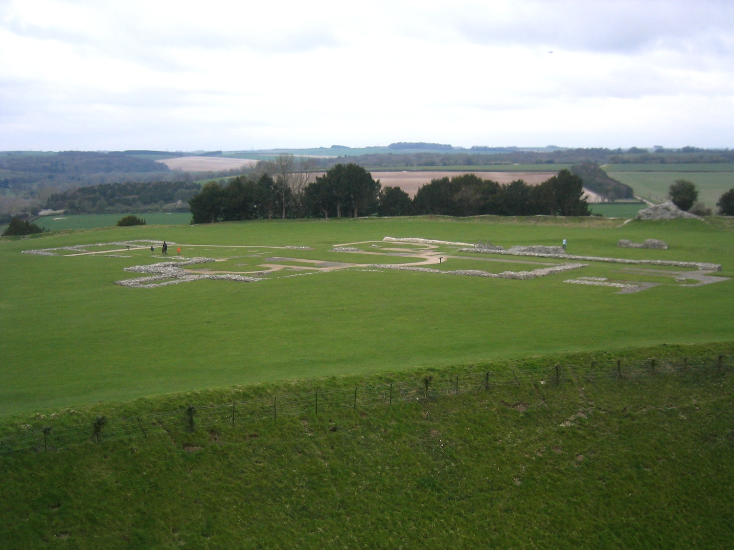 Vi var här en vinterdag för några år sedan och blev redan då fascinerade. Platsen är i ruiner och ser egentligen inte så mycket ut för världen jämfört med hur det en gång var men det är när man vandrar runt här som man uppskattar den otroliga storleken på området och ser försvarsanläggningarna som anlagts. Det första du möts av när du kommer fram är en stor yta att ta dig över för att komma till den gamla slottsruinen som väntar på dig innanför vallar av gräs. Här ute fanns tidigare den stad som gav service till det slott du är på väg mot vilket tronade över staden som för sin tid måste ha varit stor. Det är en svindlande tanke att enstaka människor bott just här sedan tretusen år före Kristus innan ett järnåldersfort skapades 2500 år senare just där två viktiga handelsvägar mötte floden Avon. Romarna tog därefter över platsen som på deras tid fick tre vägar till och kallade den för Sorviodonum. Det var under järnåldern man grävde det yttre dike runt kullen som idag är väldigt karaktäriserande och som vem som helst förstår den strategiska meningen med.