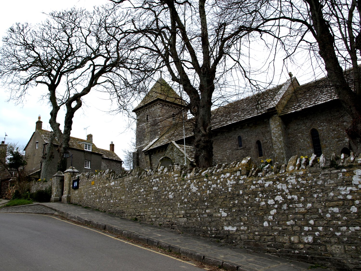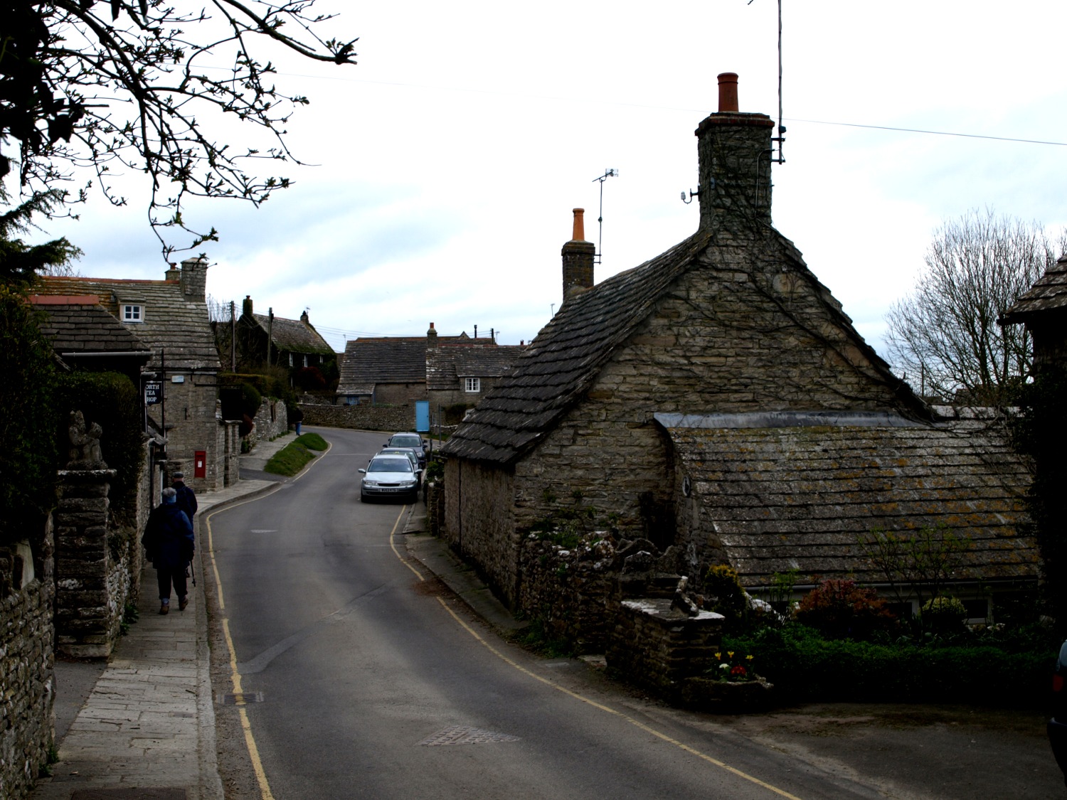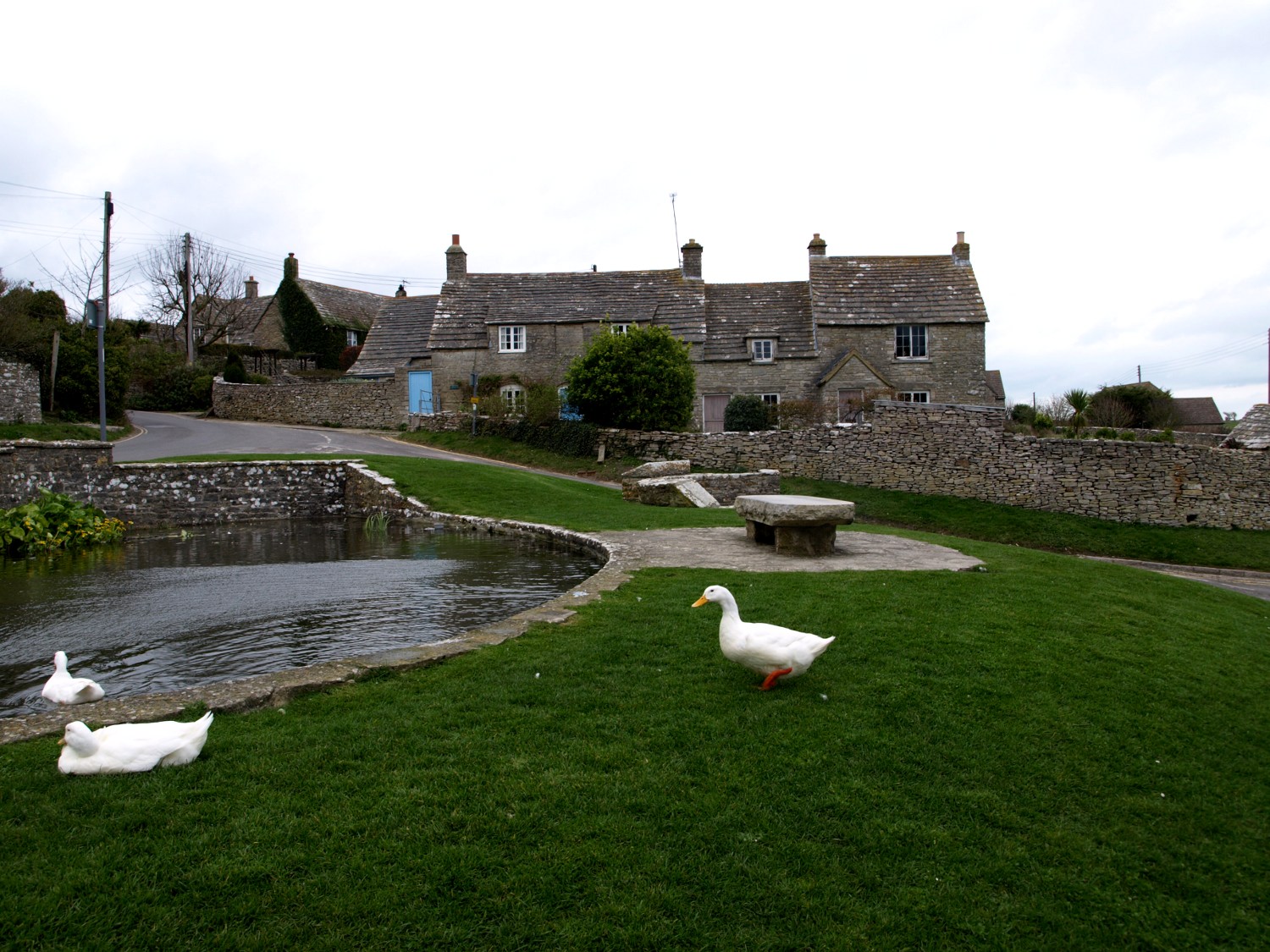 Vi kom hit med buss från Swanage som är den största orten i närheten och resan ut hit blev vildare och vildare med havet stundtals synligt på vänstersidan bland bondgårdarna. Byn ligger inte alldeles vid klippkanten men tillräckligt nära för att ge kustkänsla och här och där alltså utsik. Vi klev av bussen och hamnade alldeles vid byns damm där några ankor förstrött simmade omkring omgivna av kalkstenshusen som beroende på väder skiftar i grått eller gråbrunt. En februaridag var det ganska grått och väldigt vackert omgivet av allt grönt gräs. Idag hade det påmint mig om västra Cornwall med sina färgkombinationer men då låg västra Yorkshire närmare till hands att jämföra med och precis som båda dessa så finns här gammal industri i form av stenbrott.