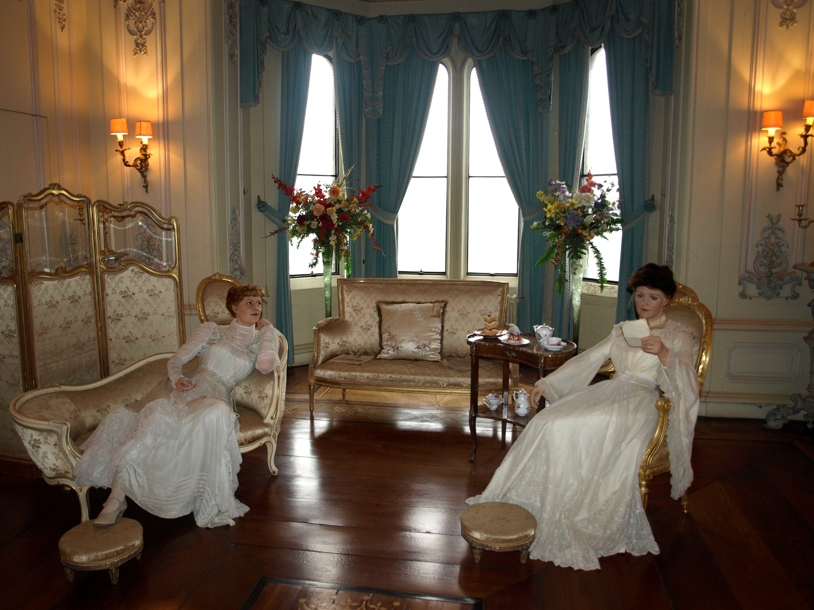 Sedan 1978 ägs slottet av Merlin som driver Madame Tussauds och många andra sevärdheter och därför har den här biten gjorts väldigt levande med vaxdockor av familjemedlemmar i olika sammanhang. Jag som kom hit för slottets medeltidshistoria tyckte faktiskt att den här biten var riktigt välgjord med drinkar i biblioteket, kortspel för herrarna och damer som samtalar på varsin chaise lounge. Övervåningen känns som rena Downton med sin långa korridor och olika sovrum och slottet har också en massa konst, inte minst målningar av kungligheter.