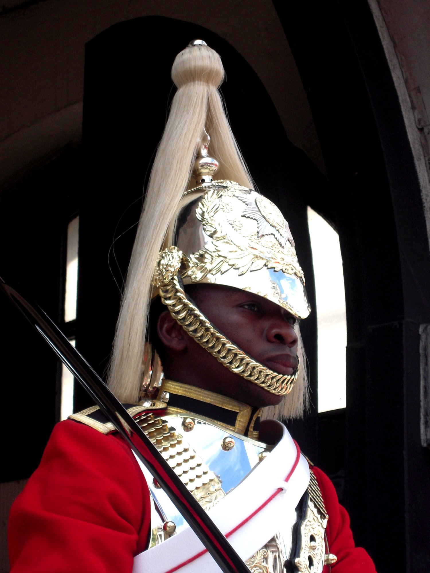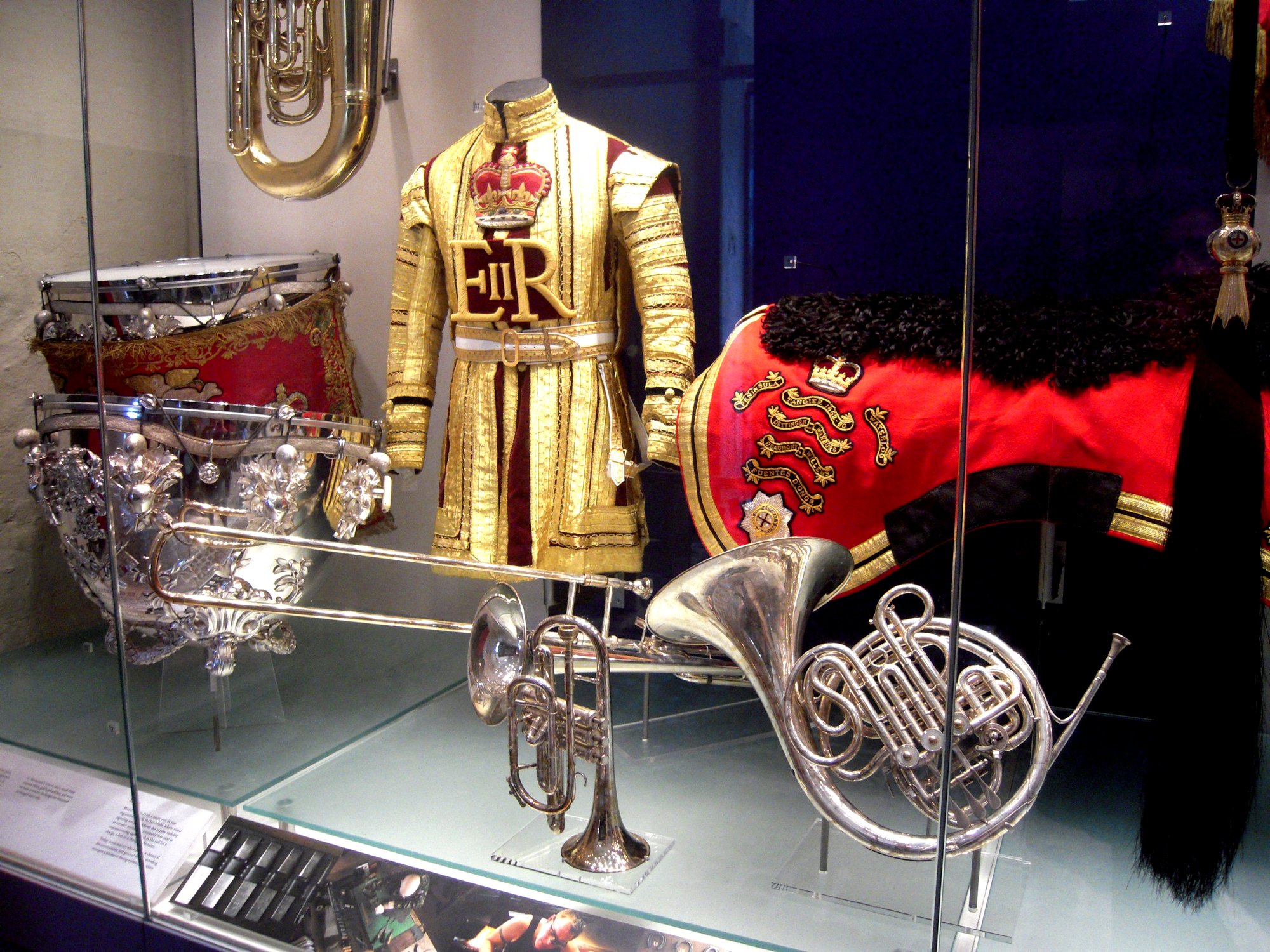 Vi är många som gått förbi Horse Guards mellan Trafalgar Square och Westminster och stannat för att klappa de ridande vakternas hästar och låta oss fotograferas. Ibland har man tajmat in vaktavlösningen också och får se de vackra ekipagen i rörelse med sina skinande hjälmar och långa, blanka stövlar. Vad många däremot kanske inte tänker på är att går man in på gården bakom dem så kommer man till deras eget museum som ger en intressant inblick i både vardag och fest för de här ekipagen. The Household Cavalry Museum visar alltså drottningens livvakter i hushållskavalleriet i all sin prakt och parader är de ju bra på vilket inte minst syns på Trooping the Colour i juni när de använder området bakom byggnaderna till att visa upp både sig själva och gästregementen från hela samväldet för drottningens på hennes officiella födelsedag (hon har en riktig också) då de hedras av henne. Till detta krävs det ju musik och muséet börjar med att visa vackra paraduniformer och instrument som använts genom tiderna. Här visas sedan upp historiska vapen och uniformer från olika kända slag liksom många fina paradsadlar och träns men också en del av de personliga ägodelar som inte minst befäl donerat – det kan gällar skolkepsar, cricketbollar och jag vet inte allt anglofilt jag såg i de montrarna.