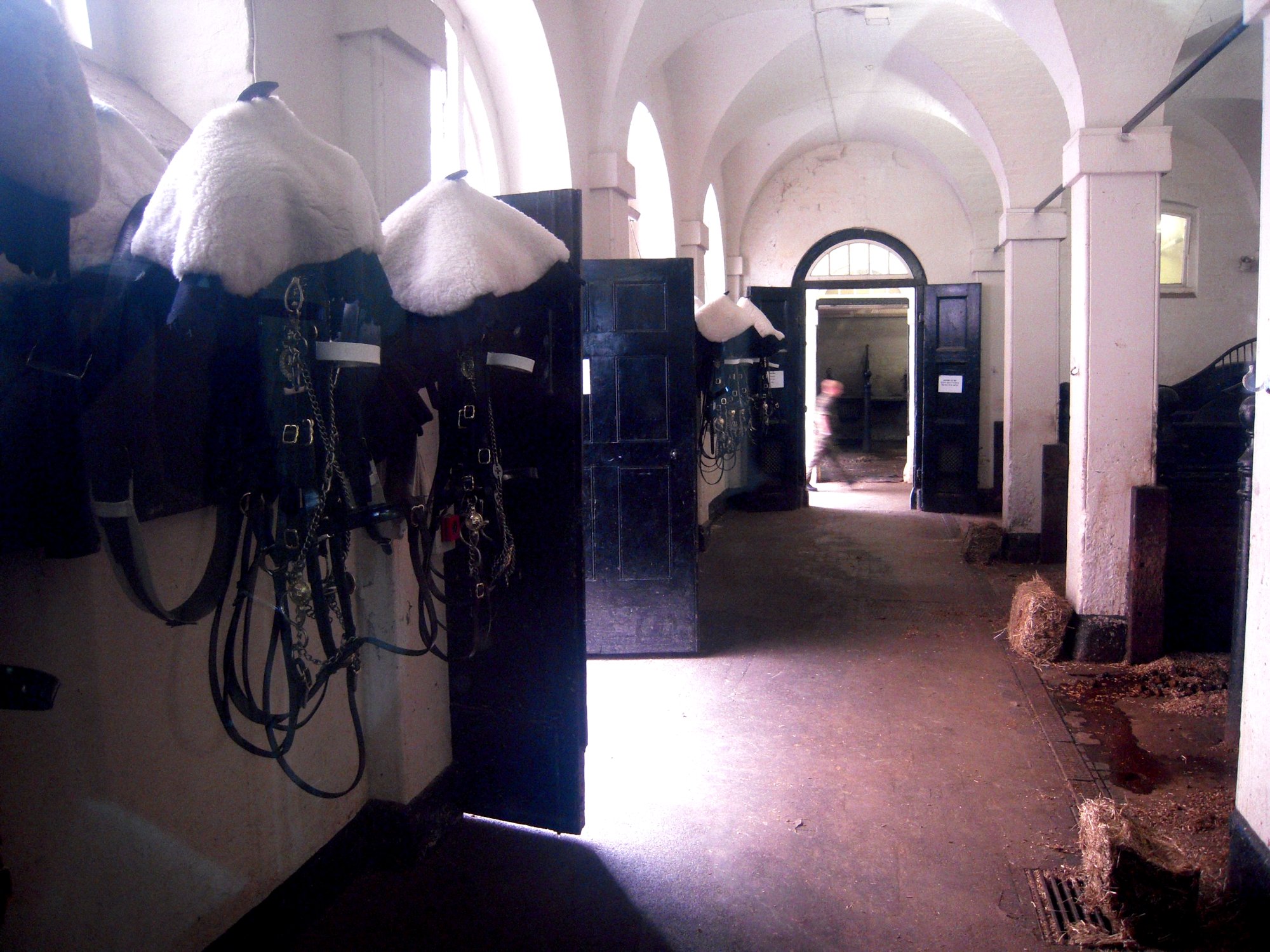 Jag har ofta undrat vad de där hjälmarna vakterna har på sig väger. Nu behöver jag inte undra mer eftersom man här kan hålla och prova en själv om man vill och den är rätt tung. Den tjocka kedjan som ska ligga så där irriterande under munnen vet jag inte om jag stått ut med men så har jag inga militära karriärönskningar. Man kan läsa sig till att det är ett evigt putsande av både hjälm, stövlar och hästens material men sådan där noggrannhet är ju typisk i alla regementen och för den delen i stall om man vill ha en säker miljö.