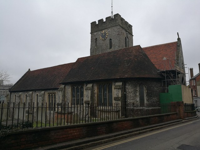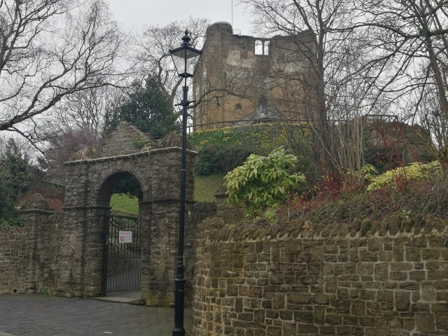 Strategiskt med utsikt in över sänkan ligger stadens slott som är från normandisk tid. Vilhelm Erövraren erövrade stad efter stad på sin väg västerut längs just Harrow Way och här byggde någon av hans lorder senare ett slott i typisk motte-and-baileystil någon gång efter 1086. Slottet har aldrig varit med i strid utan mest använts som kungligt residens med Henry III som den som verkar ha engarerat sig i det mest. Idag är det inte så imponerande men kärnan på sin motte och delar av murarna står kvar i vad som har blivit en trevlig park i gamla fina stadskvarter där vi promenerade runt en bra stund.