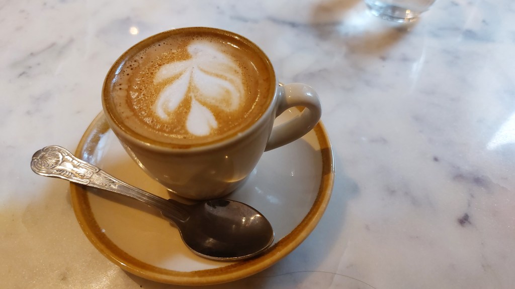 Kaffet var precis så gott som man förväntar sig på ett sådant här ställe och servicen trevlig. Trots att nya gäster hela tiden kom så kändes ingen stress från personalen även om man själv kände att man borde gå när man var klar. Prisnivån är inte den lägsta men så är London generellt dyrt just nu och läget centralt.