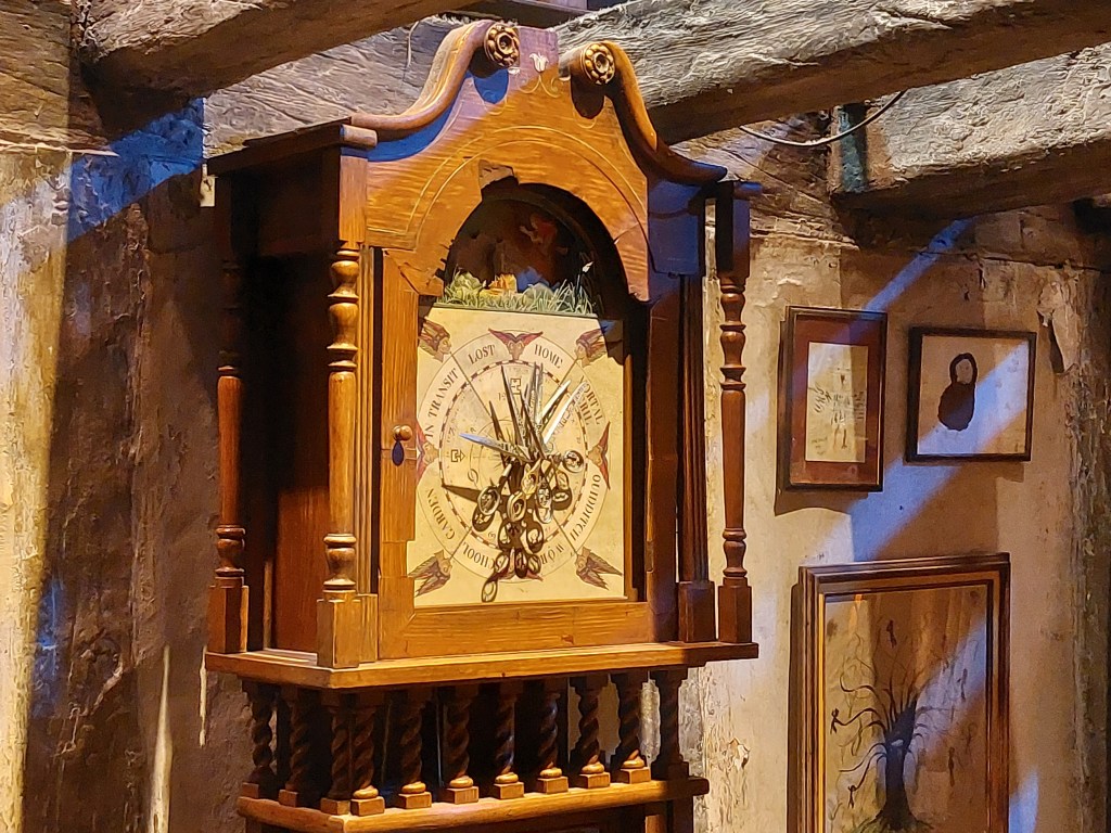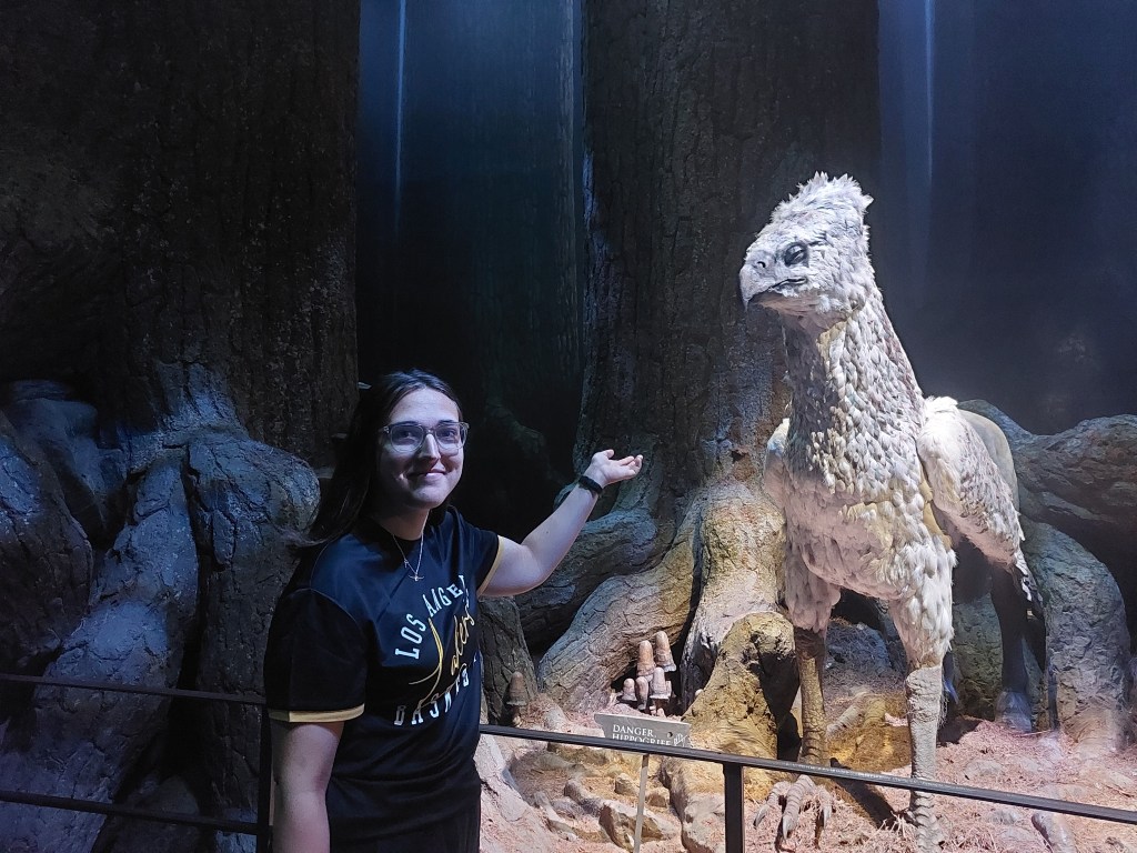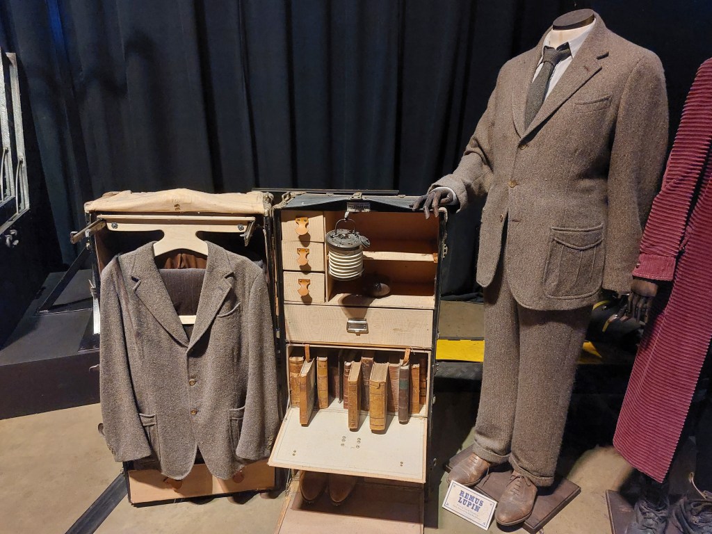 Härnäst kommer hyllningar till regissörer, manusförfattare, kompositörer, sminkörer, perukmakare och alla andra som är involverade bakom kamerorna för att en film ska bli verklighet. Jag vandrade själv ganska fort förbi den eftersom jag är uppvuxen med teater och redan vet hur man gör peruker och att scenpersonalen gör ett hästjobb men det är fint att se hur de uppskattas här och många får nog en ahaupplevelse av att se hur mycket som krävs och hur det går till. Efter denna upplevelse är det dags att möta filmscenerna. Här är Gryffindor-pojkarnas tornrum med sängar, Dumbledores rum, klassrummet för trolldryckskonst där vi får möta en ilsken Severus Snape och såklart Hagrids hydda bland mycket annat och det är en populär del av utställningarna att gå runt bland innan man tar sig vidare till Weasleys hus fullt av saker att upptäcka (vi är ju hos den uppfinnarglada familjen Weasley), deras flygande bil och mycket mer. I den här delen finns också reglerna för quidditch och har du lust att punga ut med ännu mer pengar kan du låta barnen filmas i detta sammanhang framför en green screen. Har du koll på Hagrid ordentligt? Robbie Coltranes karaktäristiska ansikte och röst är vad du ser i närbilderna men i andra scener kan det vara hans stand-in Martin som gör rollen. Allt detta förklaras noga av guider här och du får vara beredd på att ett besök på Warner Bros innehåller fakta som gör att du kommer att se på filmerna med helt nya och kanske lite mindre magiska ögon i framtiden.
