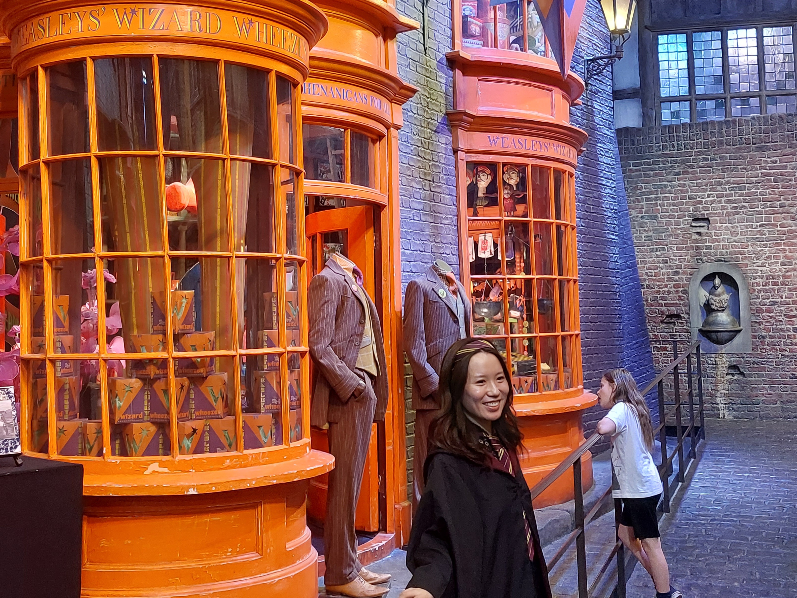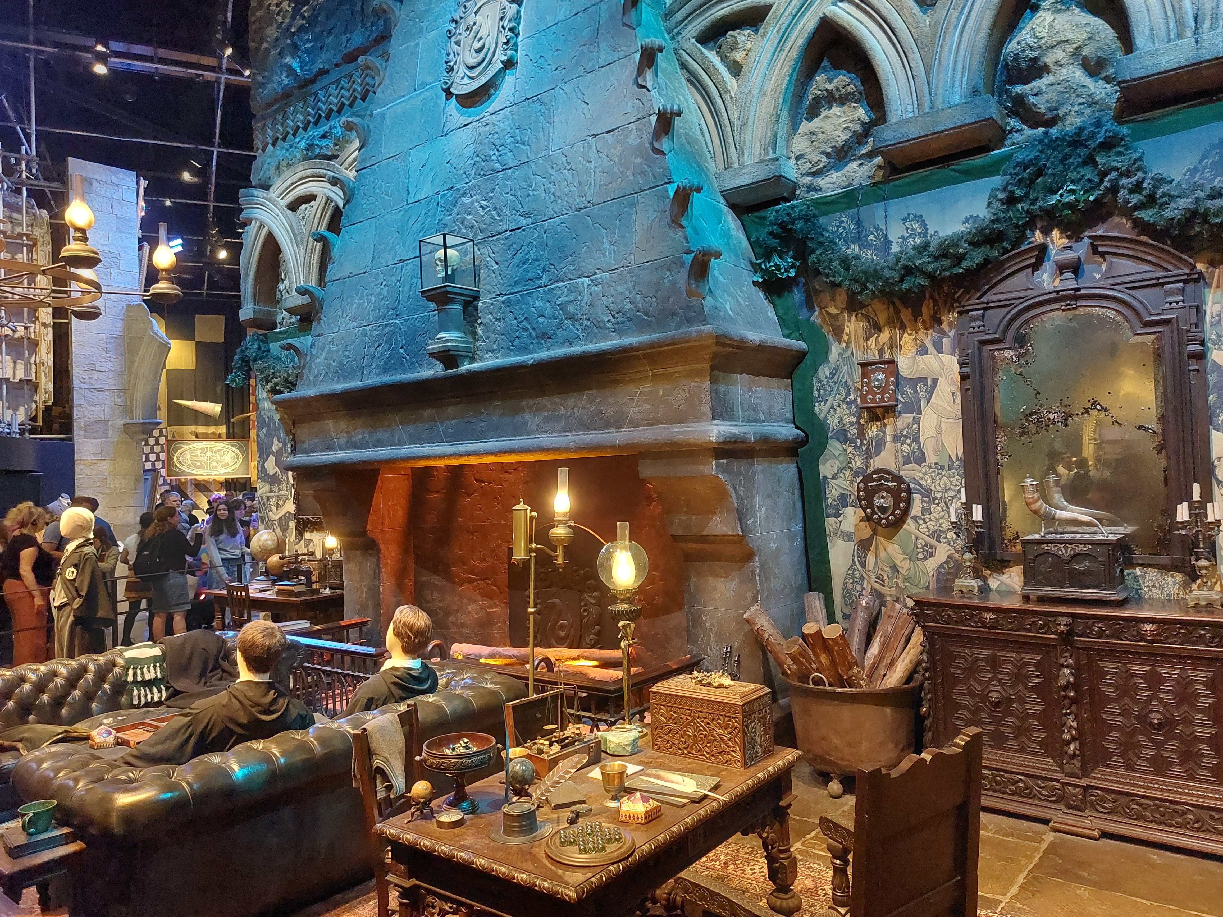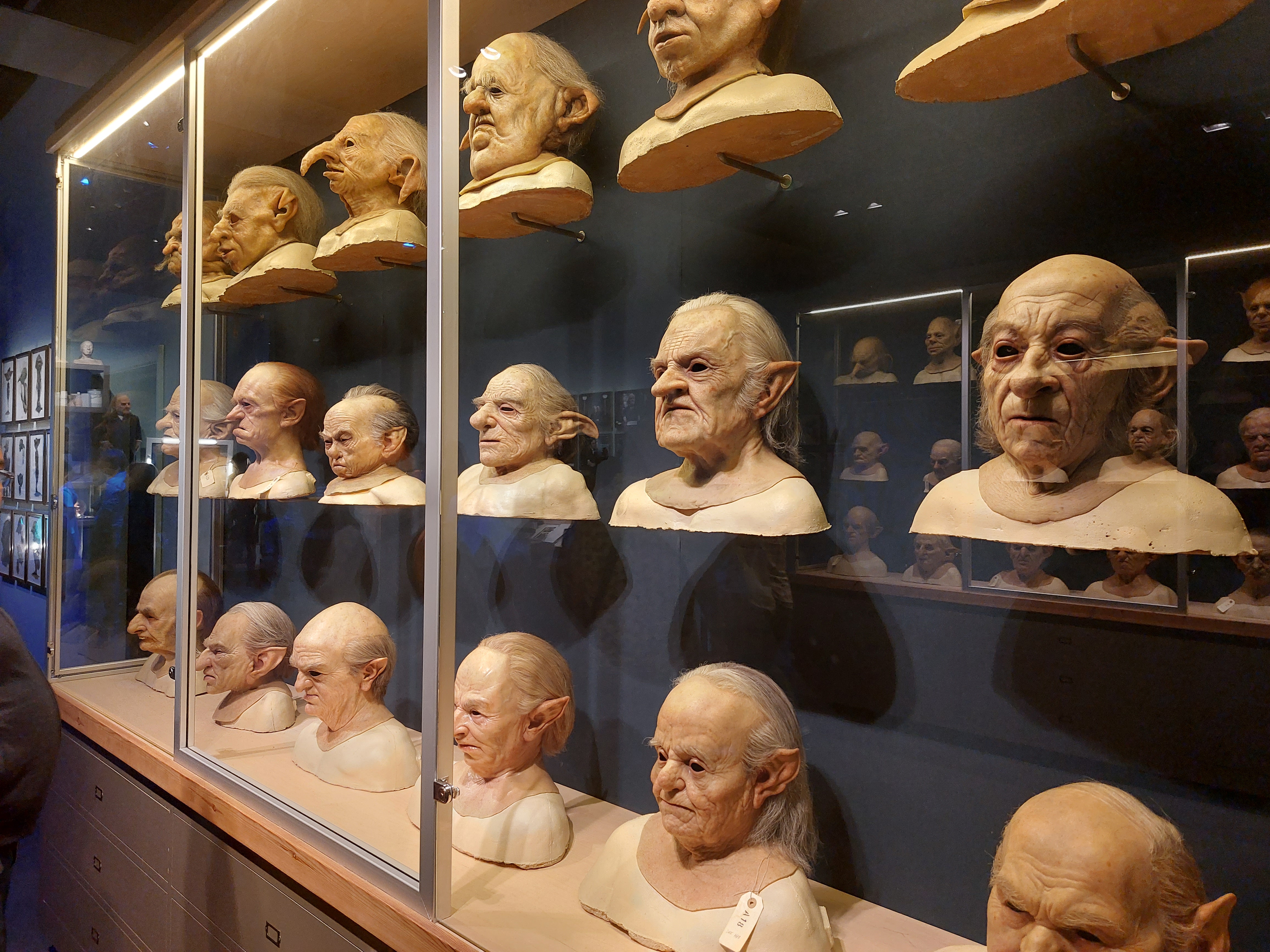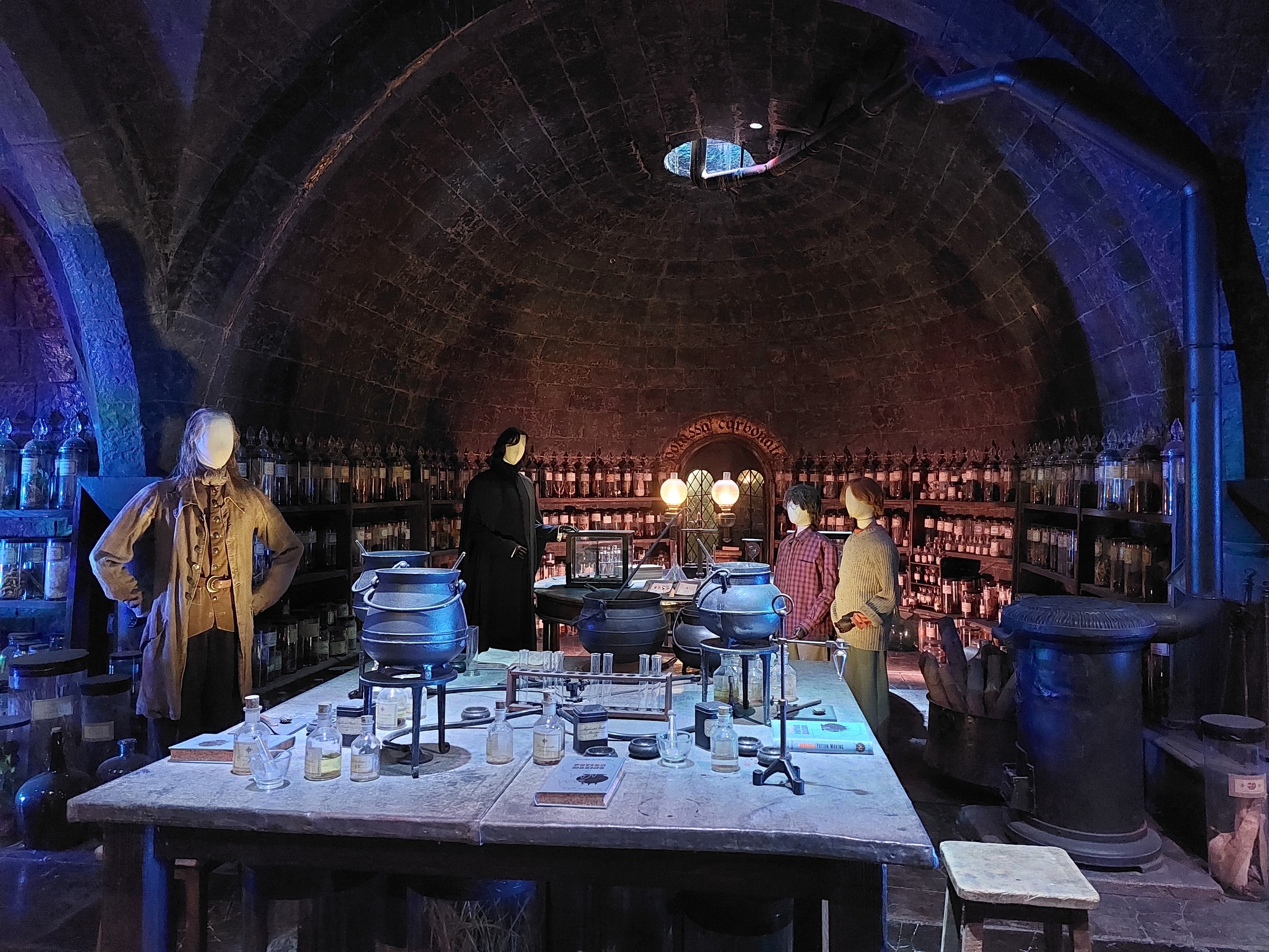 Visst är det förutsägbart att det finns några saker som kostar rejält extra och visst kunde de ha gjort karaktärerna i vax istället för som nu i anonyma teatermodeller men i det stora hela är det jätteroligt att se allt. Även jag som är van vid rekvisitörer som skapar något av nästan inget till föreställningarna imponeras av mycket som uppfunnits och av både smink och tekniklösningar och kommer du med barn så lär de vara i sjunde himlen, inte bara de små med sina trollstavar utan även äldre. Flera ungdomar hade till och med klätt upp sig i hogwartsuniform och poserade med varandra framför det mesta och ibland ville man nästa fotografera dem mer än scenerna. Souvenirbutiken i den stora hallen vid entrén är inte att leka med. Det finns knappast något du inte kan hitta vilket Hogwarts-hus du än gillar och det är kläder, kramdjur, Lego, smycken, parfymer och allehanda prylar i rum efter rum efter rum. Dock är det roligt att sedan komplettera med ett besök hos filmens kända designers MinaLima i Soho och köpa kopior av deras vackra filmillustrationer som inte säljs här. Hela vårt besök tog runt tre timmar utan stress, plus lite extra tid i butiken och då köpte vi inte till audioguide med fler detaljer. Ibland är det speciella evenemang under några månader så spana in hemsidan innan du beslutar dig för månad och undrar du över något jag glömt så skriv en kommentar. Om det här är samtliga mina bilder? Nej, kanske en tredjedel.