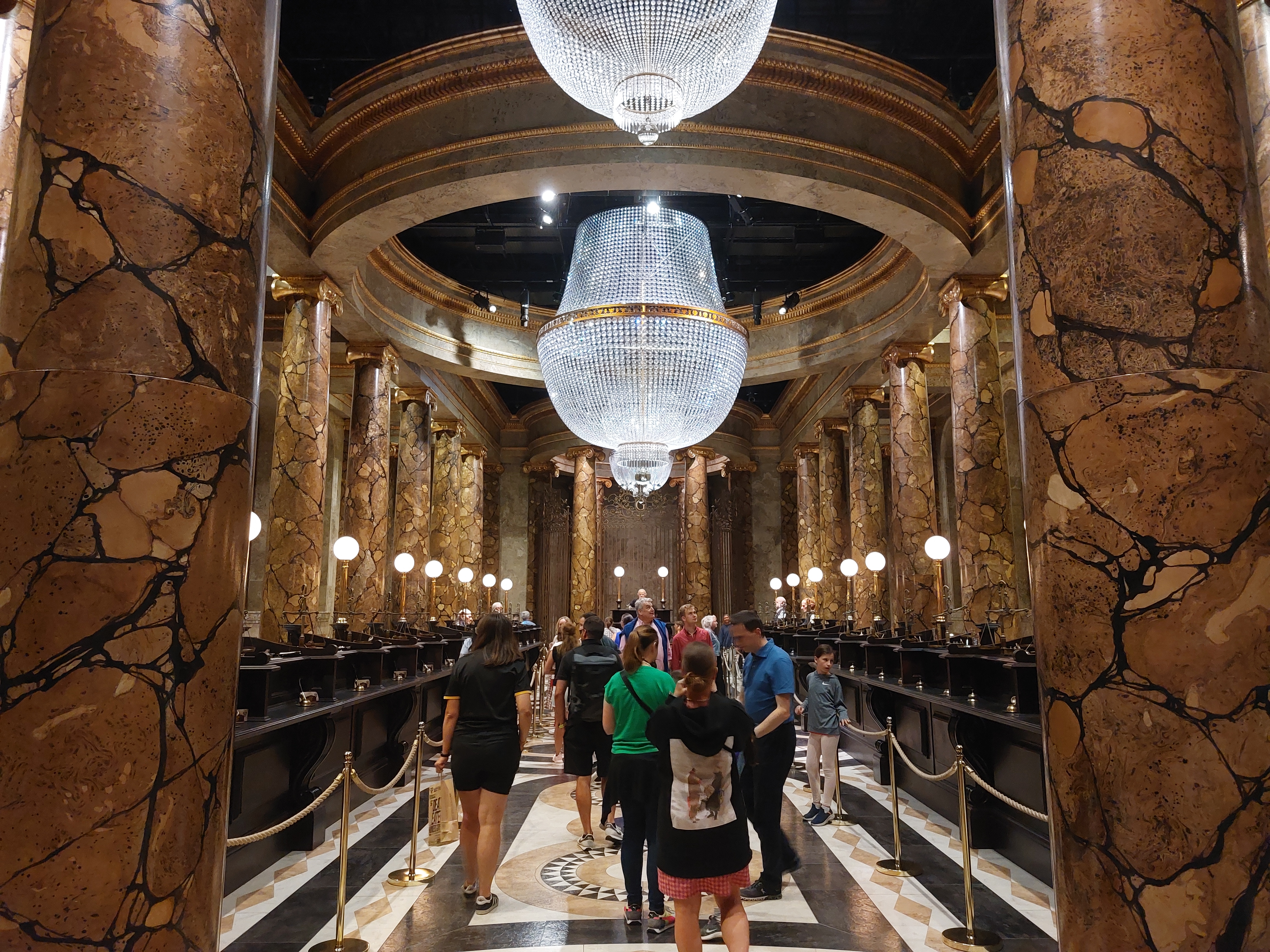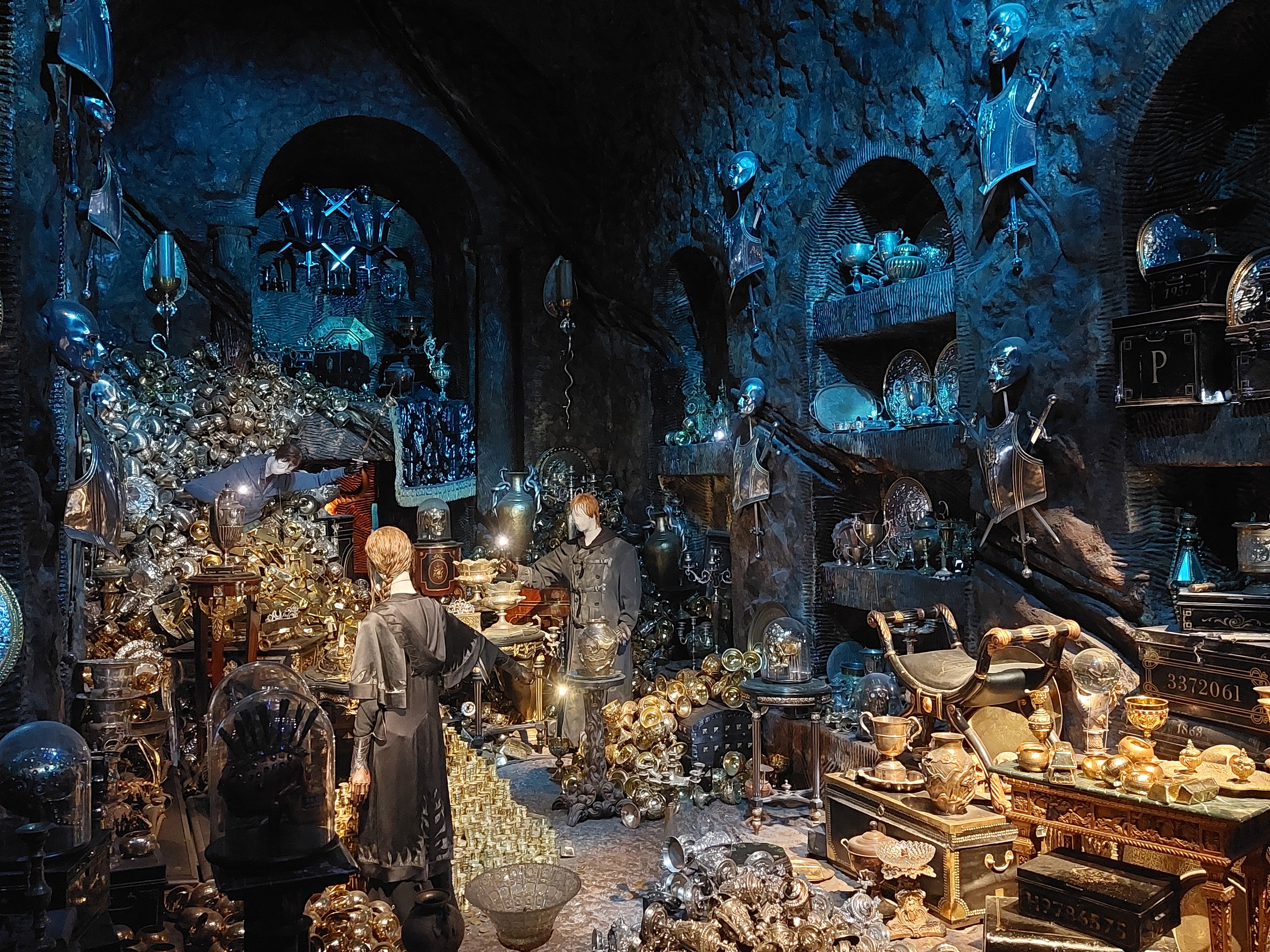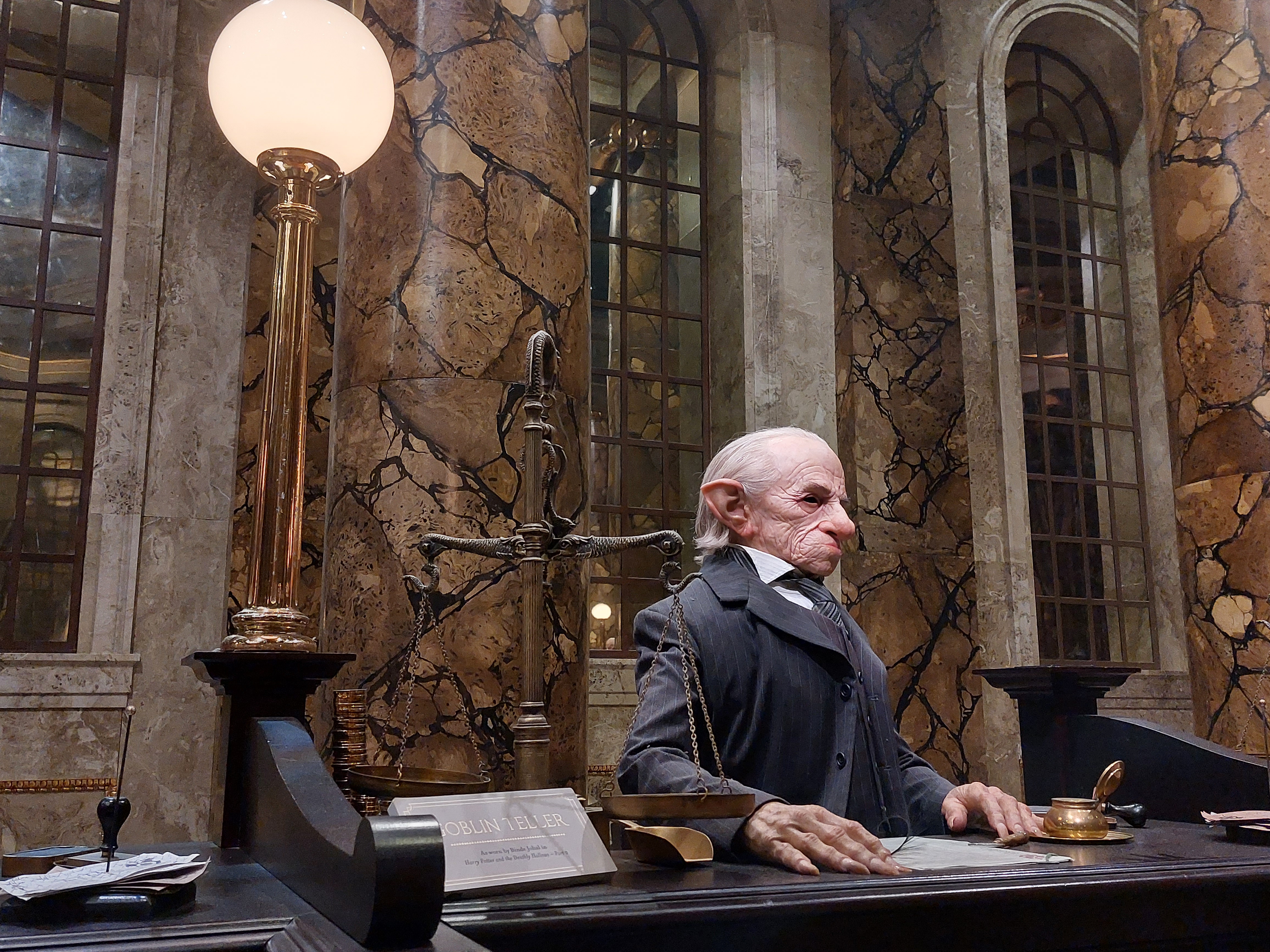 Nästa del av besöket inleds med diverse spännande teknik. Hur rör sig Dobby? Du kan interaktivt ha kul medan du upptäcker detta liksom hur flera drakar och monster skapats och hur man gör läskiga händer och liknande. Allt som allt känns det som om Harry Potter själv kommer i andra hand under besöket. Det är så många andra spännande karaktärer överallt, inte minst de kortväxta banktjänstemännen i sin vackra sal. Där händer det grejer vill jag lova, både i den vackra skattkammaren och när draken vaknat. Sedan blir det genast lugnare på Diagon Alley där man vill ställa sig och ropa ”detta är inte Shambles”. Ljussättarna har gjort ett fint jobb med dag och kvällsljus som varieras under tiden du är där och strosar förbi de kända butikerna. Hogwarts står ju inte i det skotska höglandet på riktigt. Istället är det här du får se det från utsidan in i minsta detalj. Den massiva modellen imponerar och är en magnifik avslutning på ett spännande besök i filmens värld där också konstnärerna och modellbyggarna hyllas på vägen.