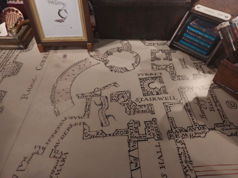 Där nere dräller det av klassiska skrifter och Marauder’s Maps och här finns också en monter med mer exklusiva skapelser och mer om MinaLima själva och deras tankar kring designen.