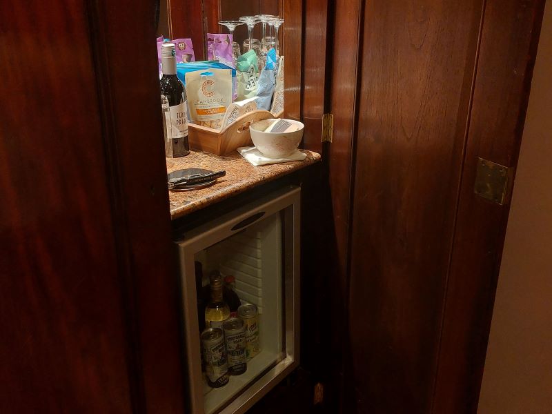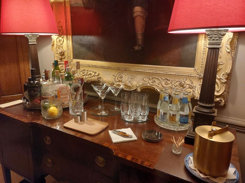 Tillbaka i salongen introduceras jag för deras ”honesty bar”. Jo det är precis det. En bar där du tar vad du själv vill ha och skriver upp det på en lista intill. Lite som de där grönsaksvagnarna du kan cykla förbi på skånska landsbygden och köpa dig en pumpa eller en blombukett fast här pratar vi fin sprit av alla de slag.