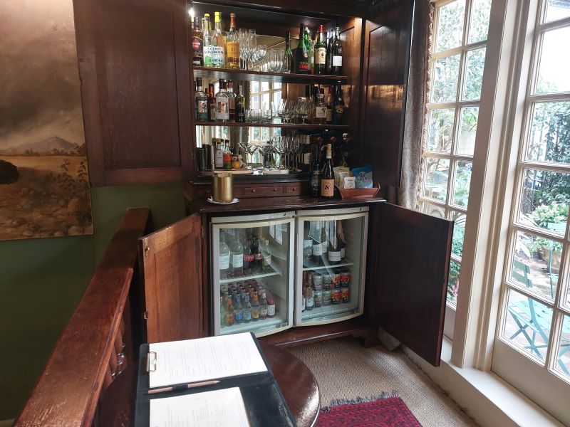 Efter en stund på rummet är det ändå dags att gå ut men när jag återkommer till hotellet på kvällen måste jag såklart njuta av de allmänna utrymmena igen innan jag slår mig till ro. Det blir en stund i vinterträdgården där jag sitter och läser och undrar om Bagheera ska dyka upp medan jag tar ett glas vin för som om det inte räckte med ärlighetsbaren i salongen så finns det än även här! Den har dessutom en kyl med perfekt tempererat vitt vin och utöver olika glas också Worcestershiresås, Tabasco, lime och allt det där andra du kan behöva.