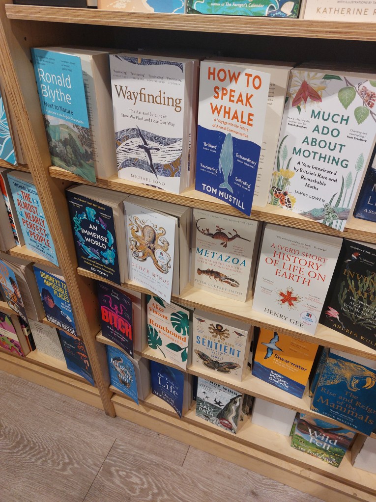 Böcker är ett måste att shoppa och även om jag kan handla hemma till nästan samma pris idag utan att behöva släpa hem dem i packningen så finns det alltid bokbord där det är rea eller med nyheter. Årets nyhetsbord är väldigt spännande för vad det säger om tiden vi lever i. Det är nämligen knappt några romaner på förstaborden nu utan mängder av böcker om vetenskap och världen. Allt från vad vi lärt oss om kommunikation tack vare valar till böcker om brittiska nattfjärilar och hur vi hittar i vår omgivning. Hoppas på mer av det här och i Sverige har vi ju samma trend med böcker om ljusförorening och skogar.
