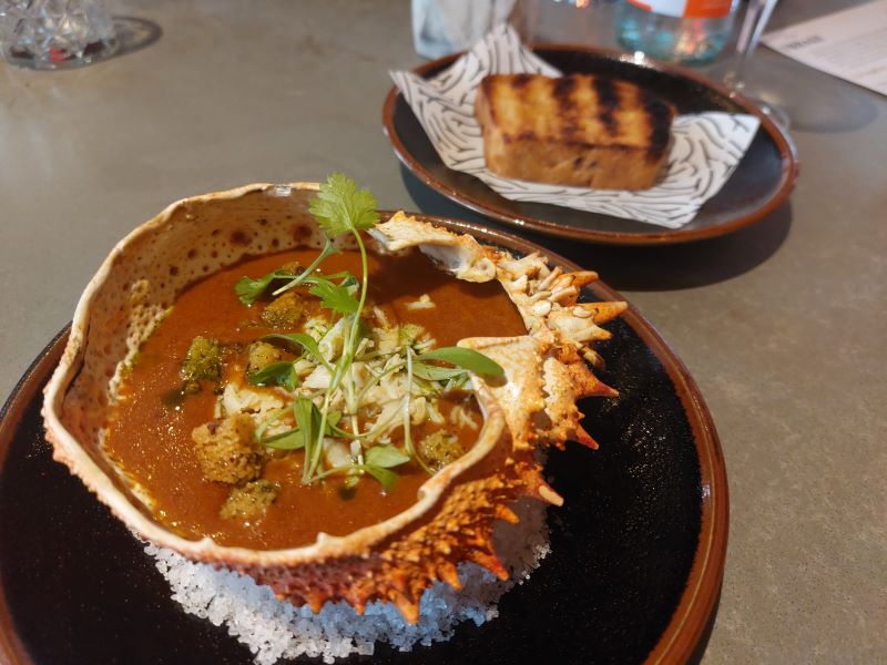 Krabbisque med bitar av krabbkött och hemgjorda krutonger var en riktig höjdare