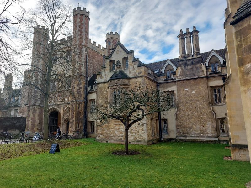 Innan du kommer ända fram till St John´s kommer du till den mer kända grannen, Trinity College, med sin imponerande port som är väl värd att titta närmare på. Där vill du heller inte missa Newtons äppelträd som förvisso inte är särskilt stort och imponerande men det är ju ändå legendariskt. Klicka på länken om du vill besöka Trinity. Biblioteket måste du visserligen vara medlem för att komma in i men det vackra kapellet från Elizabeth I:s tid går inte av för hackor det heller.