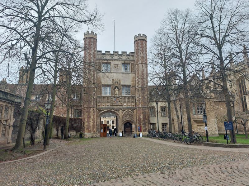 Från Trinity Lane ser du St John´s College Chapel och Great Gate