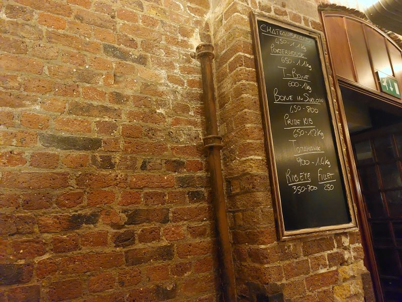 Alla de traditionella styckningsbitarna oxfilé, entrecote, ryggbiff och rumpstek finns här med fasta priser för 3-400 gram som är det de oftast ligger på men så har menyn också större köttbitar och där är det vad som är tillgängligt för dagen som styr. Du hittar därför kött som t-bensstek, chateaubriand och annat på griffeltavla istället. De bitarna betalar man per hundra gram men eftersom de är stora så blir det ofta kött i minst 500-gramsklassen. Alltså är det här ofta stycken som lämpar sig att dela med ditt sällskap om du inte tänker äta jättemycket. Själv hade jag alltså inget sällskap men däremot sådan tur att eye fillet fanns i liten bit just den här dagen. Jag som gärna äter entrecôte ville passa på att få den här mindre marmorerade men ändå fina delen av den som omväxling.