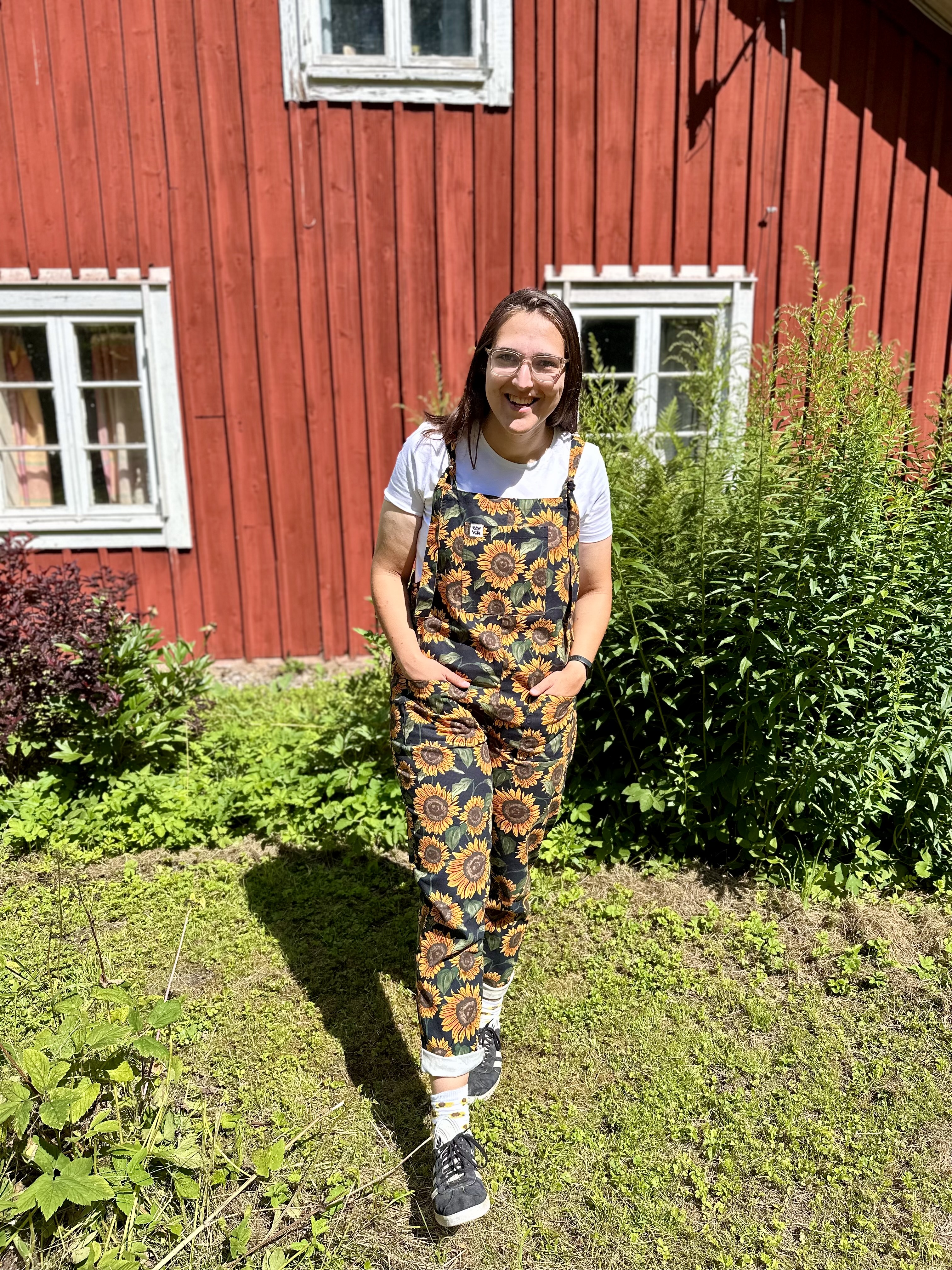 Själv är jag över femtio och kände först att ”har den där hippa butiken något för mig?” I min ungdom hade jag gärna gått med solar och månar på kläderna men det är kanske inget jag idag skulle gå till jobbet i. Dessutom drar jag stora storlekar och då brukar det bli ett ganska torftigt utbud i små butiker. Så icke här. Det finns allt från XS till 3XL fast de stora storlekarna är generösa så du kan ofta ha en eller till och med två storlekar mindre än du brukar, beroende på modell. Bara det kan ju göra en glad. Lägg till det att det finns en massa olika mönster och modeller och personalen ger bra råd så det kan löna sig att besöka en butik innan du handlar vidare online för här syr de för alla sorters kroppar. En bonus är att just byxorna finns för både långa och korta personer. Jag själv har fastnat för vanliga byxor, både mönstrade och enfärgade. Det finns alltså även enfärgat här fast det färgglada är det som dominerar. Kul tycker jag som tycker att vi skandinaver (ibland med undantag för danskor) klär oss så mörkt. Vad för mönster du än väljer är kläderna jättesköna och av ekologiska eller återvunna material. Min dotter? Hon har just köpt långkjol med solrosmönstret och sparar nu ihop till hatt.