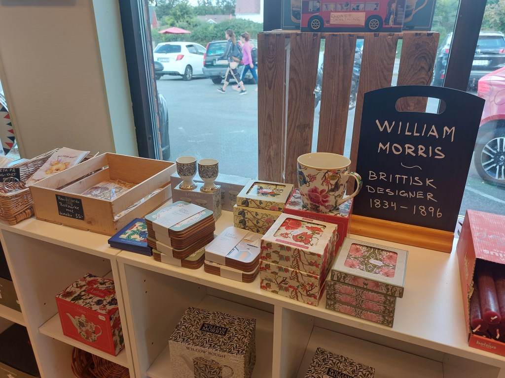 Man inser snabbt att Lady Morris tar sitt namn från den engelske formgivaren William Morris, känd som en av de stora i den så kallade Arts & Crafts-rörelsen. En stor del av butiken är vikt åt hans mönster tryckt på allehanda produkter. Här finns också prov på mönster till de otroligt vackra mattor med Morris-motiv du kan beställa. Man vill ha varenda en.