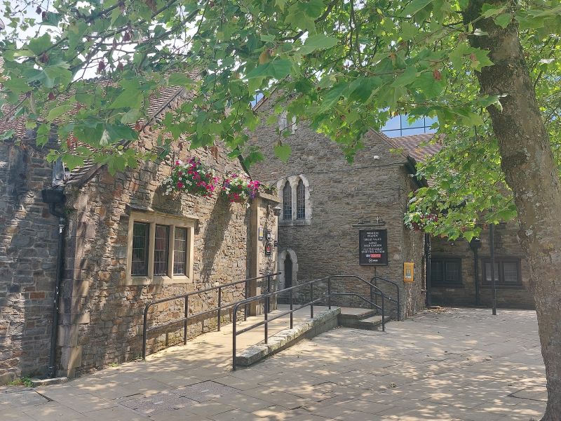 Mycket i de här kvarteren är alltså borta men kvar vid torget hittar du två byggnader som klarat sig i det sydvästra hörnet. Dels kyrkan St Mary’s, till stora delar 1700-tal på en plats där det tidigare stått kyrkobyggnader. Dels det gamla St Davids sjukhus som legat här sedan 1300-talet men byggts om och till bland annat under 1600-talet och som idag rymmer den livliga sportpuben The Olde Cross Keys. Det var St Davids som utnämnde St Mary’s präster under medeltiden på grund av kyrkans landägande.