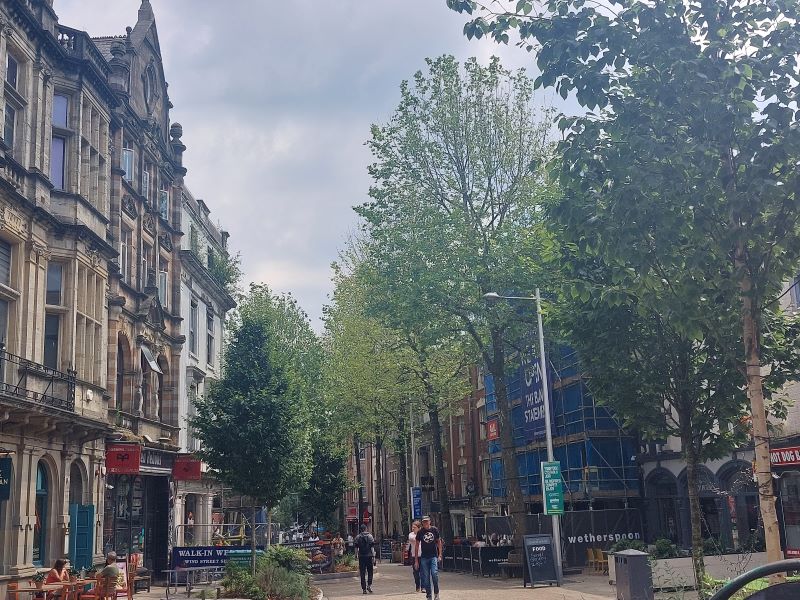 Fortsätter du rakt fram efter slottet så kommer du till Wind Street som leder ner mot de gamla hamnkvarteren vilka idag gentrifierats. Det här gör att gatan är full av vackra gamla byggnader som rymt banker och handelsbolag. Nuförtiden är det en av stadens stora nöjesgator med pubar och klubbar, vissa vildare än andra.
