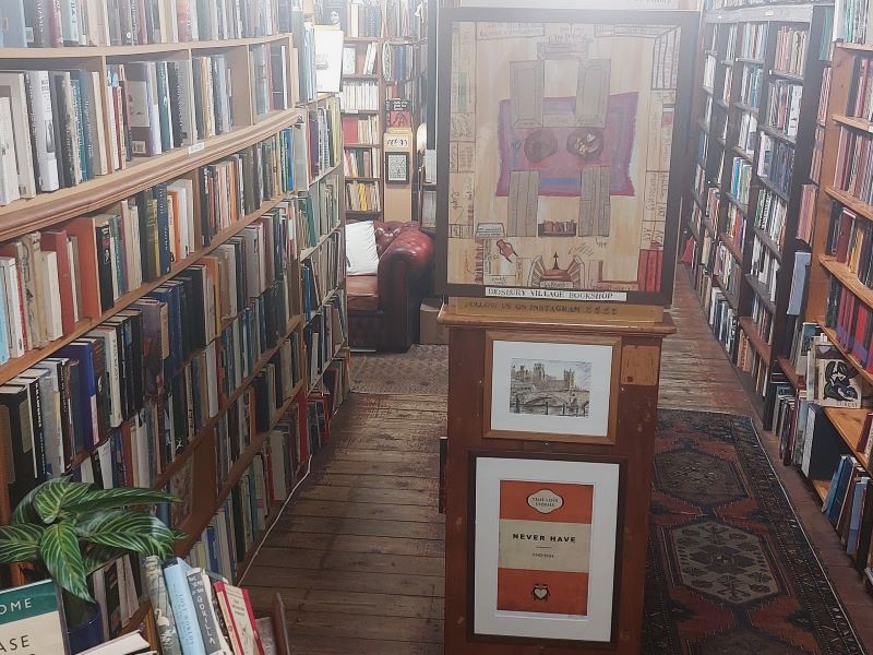 Till slut tänker jag att jag borde bege mig in mot stan igen innan jag blir hungrig och då måste jag ju ta mig en titt på alla böcker först. Trappstegen ner till antikvariatet kommer den. Doften av gamla böcker. Det är ingen jättestor lokal men det är trångt mellan hyllorna så de har prioriterat att ändå få in mycket och kategorierna är väl skyltade. Jag hittar flera intressanta böcker men de ska ju hem med tåg också så jag nöjer mig med en om Nordengland med berättelser om det gamla Manchester med omgivningar och personer som verkat här.