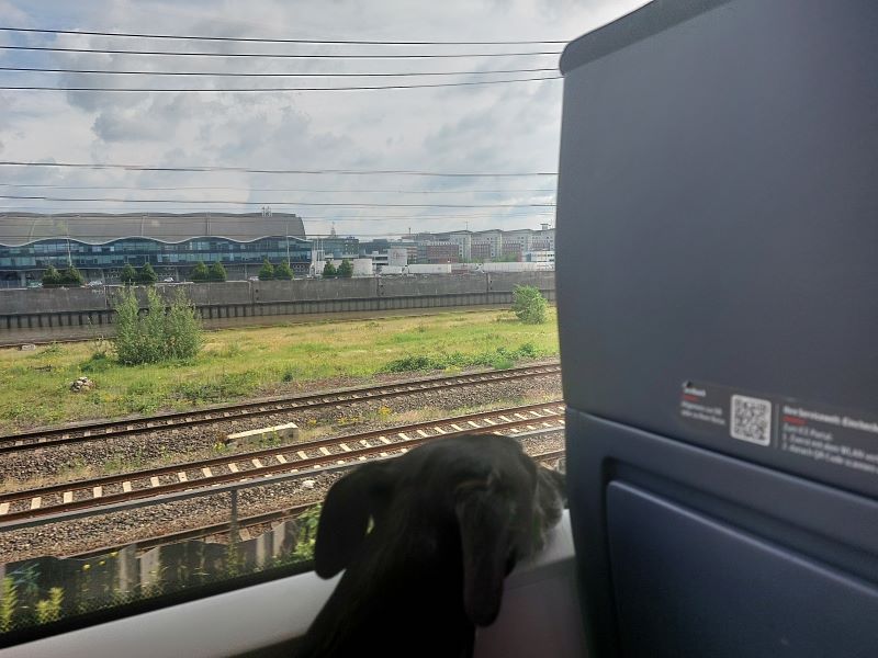 Allt det här ser kanske mycket ut men det beror nog mest på att jag skrivit en massa text och inte bara punkter. Vi tycker det är busenkelt nu när vi vet hur man gör. Det är bara förseningar och sådant oförutsägbart som kan vara extra frustrerande med hund och de får man ju bara leva med om man väljer tåg men även du som tar bil de här vägarna kan ju hamna i köer inte minst på Autobahn. Ta med en hopfällbar vattenskål och såklart vatten. Det kan bli varmt på tåg sommartid utan ordentlig AC. Med det och lite snacks samt favoritfilten som luktar hemma är du beredd på det mesta. Trevlig resa!