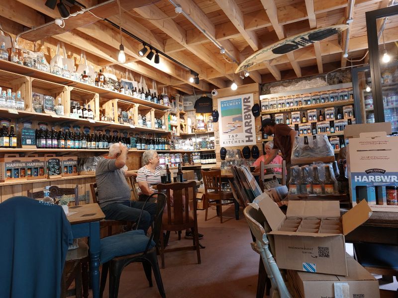 Redan när du börjar gå ner i gränden ser du de välkomnande öppna dörrarna. Här blir man nyfiken. Väl framme inser du att det är två hus på varsin sida. Den ena sidan hyser själva bryggeriet och du uppmuntras se vad som är på gång där bland tunnorna. Det är på den sidan du som vill slå dig ner en stund beställer din öl. Först måste du såklart provsmaka för det finns en stor variation med allt från lager till IPA och mörkare öl. Kan du inte bestämma dig så får du provsmaka och även om du vet vad du gillar för typ av öl så händer det att du fastnar vid pumparna med sina clips med design som alla har med havet, Tenby och historia att göra, oavsett vad som bryggs just då.
