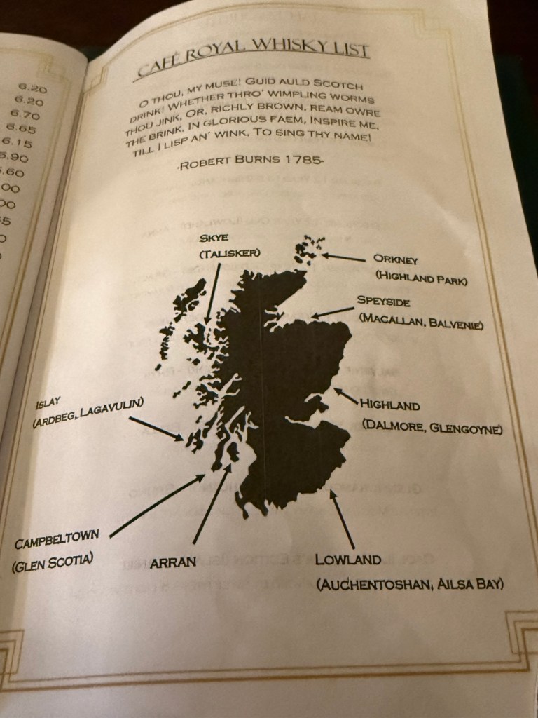 Gamla stan i den skotska huvudstaden är full av mysiga pubar och barer medan de i den nyare delen nedanför är av mer blandad kompott inte minst längs klassiska Rose Street. Här nere finns också flera lite elegantare pubar och vackrast av dem alla tycker jag är omtyckta Café Royal på West Register Street nära St Andrew Square som inte bara är en bar utan också har en restaurang.