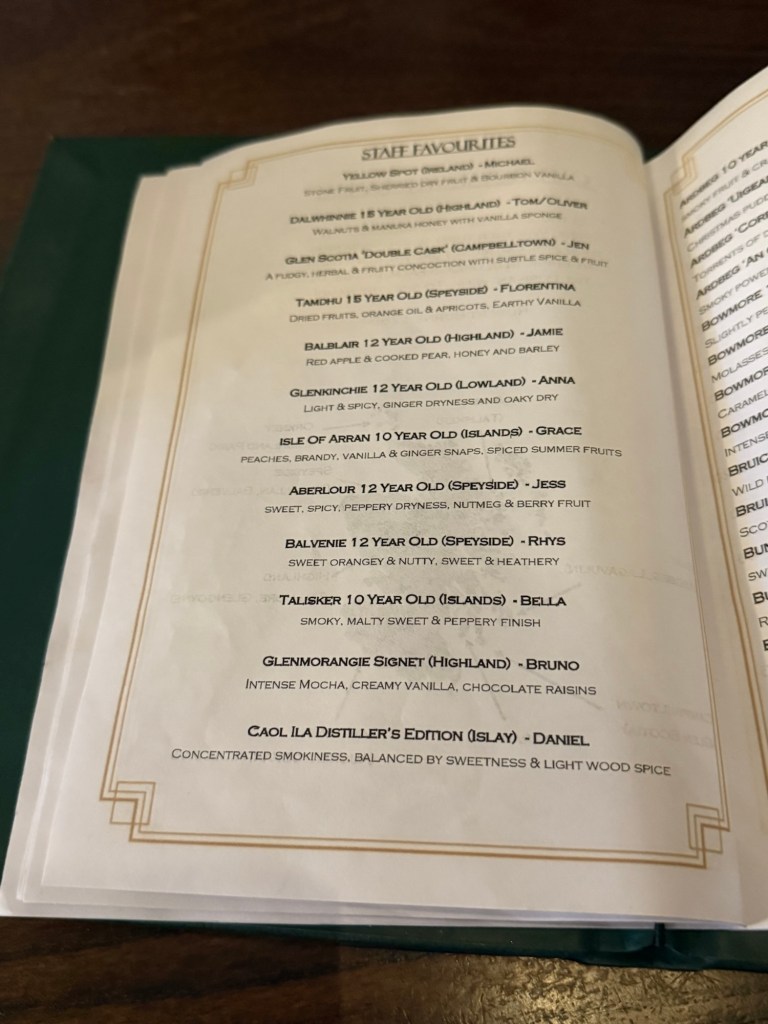 Gillar du inte ostron så har du en hel del annat att välja på i restaurangen. Det mesta skotskt med mycket fisk och skaldjur men i skrivande stund även en Lamb and haggis Wellington och den skotska nationaldesserten Cranachan, min absoluta favoritdessert alldeles före Sticky toffee pudding som också finns. Hit vill man alltid tillbaka.
