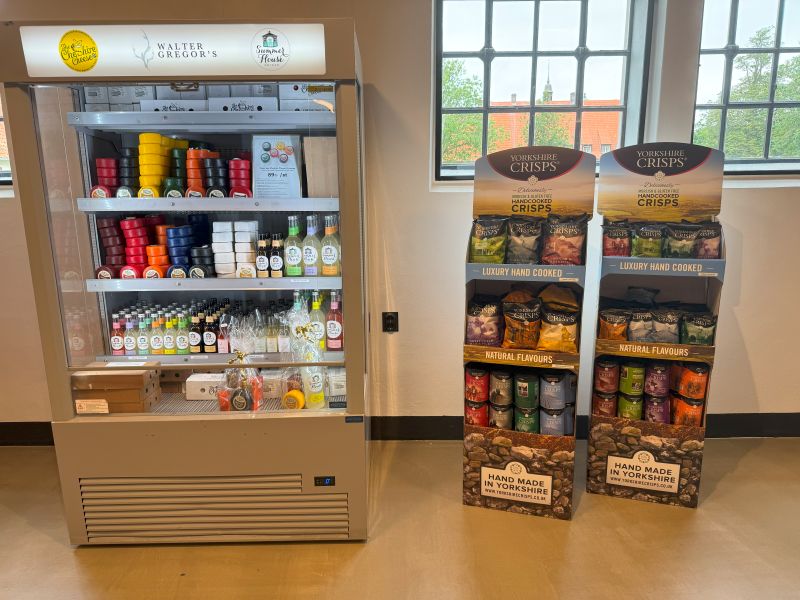 En stor del är också maten. Till de där tekopparna har du mängder av fina teer och marmelader att välja mellan och självklart shortbread. Som du redan läst har jag en gång beställt hem ost och här finns den i kylen. Kan du inte välja sort så går det att provsmaka flera i caféet. Just det tog jag förövrigt inga kort på men där kan du få både trifle och shepherds pie samt engelsk cider vilket jag får recensera vid ett återbesök eftersom vi just ätit innan besöket.