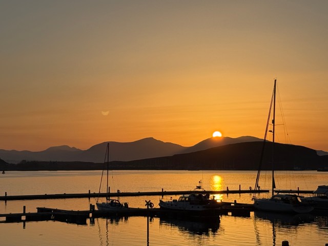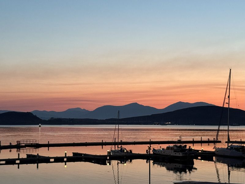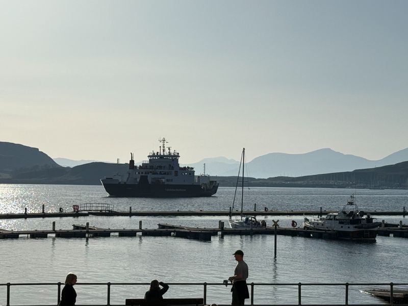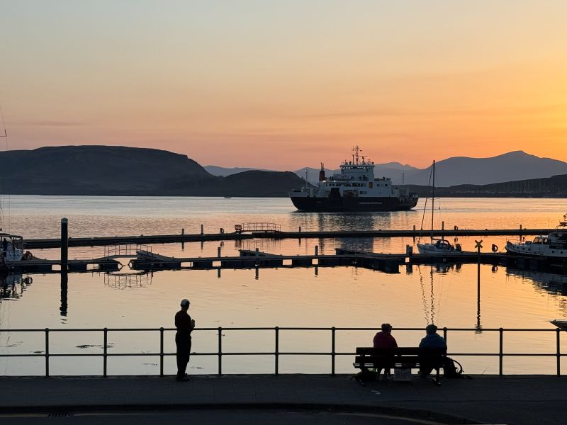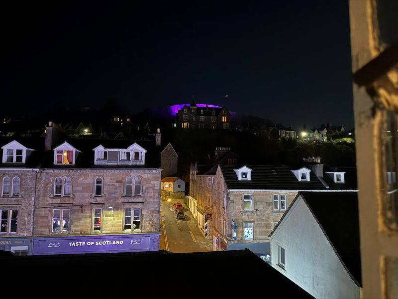 Oban är ingen stor stad och är centrerad runt sin lilla bukt med hamnen. Bara några steg från järnvägsstationen hittar man de första hotellen men vi valde att boka ett alldeles bortom hamnpromenaden, ut längs Corran Esplanade där små hotell och B&B:er ligger som ett pärlband. För oss var det priset som avgjorde. Vi var rätt sent ute och hittade ett erbjudande med middag första dagen till ett makalöst bra pris. Muthu Regent visade sig vara ett bra val för här, alldeles runt hörnet från livliga George Street och hamnen har man plötsligt öppen utsikt rakt ut mot ön Mull och det är här solnedgångarna kommer till sin helt egna rätt i staden för den som inte orkar upp till den kända amfiteatern.