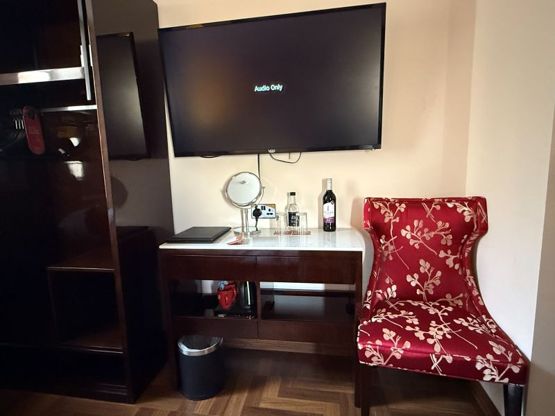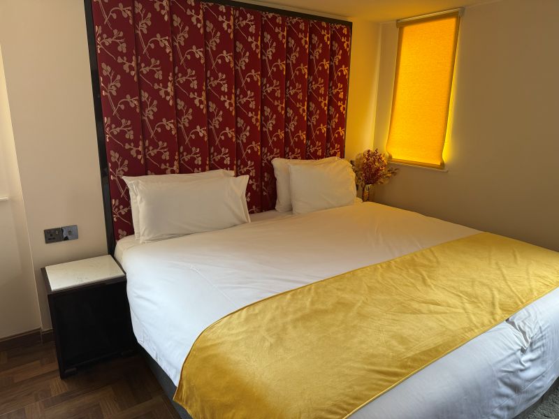 Incheckningen gick smidigt och vi åkte upp på rummet. Hotellet har tidigare nätrecensioner som pekat ut att det behöver mer omsorg men på hemsidan hade vi nu sett att det var nyrenoverat så vi hoppades att det skulle vara sant och gälla även vårt rum. Receptionen kändes inte så 2025 men då ska man veta att själva byggnaden går i en sorts art deco som är lite kul.