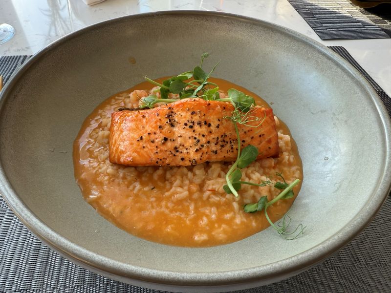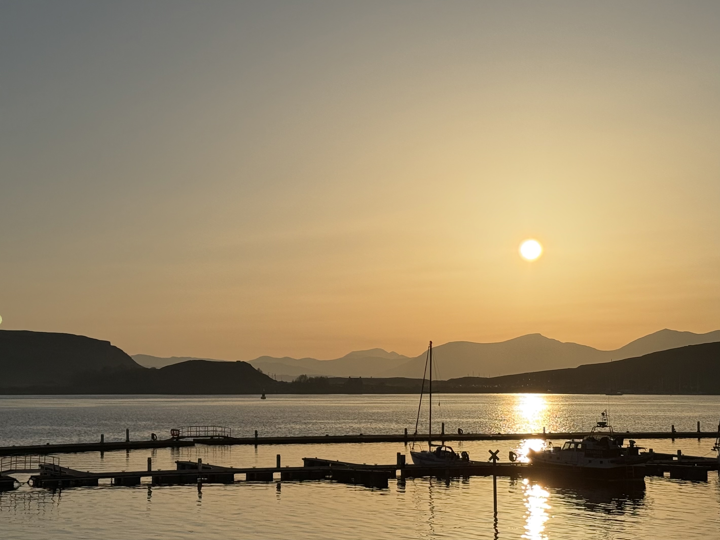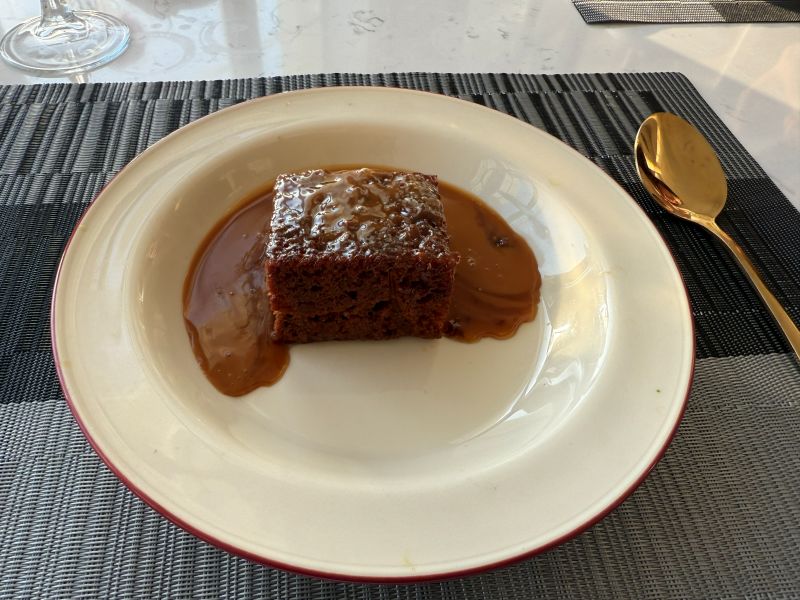 När vi installerat oss gick vi ner för att äta vår middag. Jag hade verkligen inte förväntat mig några stordåd av ett nyrenoverat litet hotell i Oban och tyckte därför att den var helt okej. Vår bokning inkluderade trerätters där vi hade att välja mellan fyra förrätter, fyra varmrätter (båda med ett vegetariskt alternativ) och ett par desserter. Medan dottern valde dagens soppa till förrätt och var nöjd med den så valde jag haggis bon bons för det äter man ju inte varje dag hemma och det var faktiskt det bästa av allt. Till varmrätt blev det kyckling med pepparsås för dottern och jag tog skotsk lax med skaldjursrisotto där det kunde varit betydligt mer tryck i skaldjuren och laxen var något torr men det var ju nu inget lyxhotell och det är svårt att få säsongsarbetare i köket redan till påsk efter Brexit i småstäder långt bort så jag var nöjd. Desserten däremot var mer av en besvikelse eftersom jag älskar sticky toffee pudding och den här kom helt utan vanilj, varken som glass eller sås även om den var god i sig.